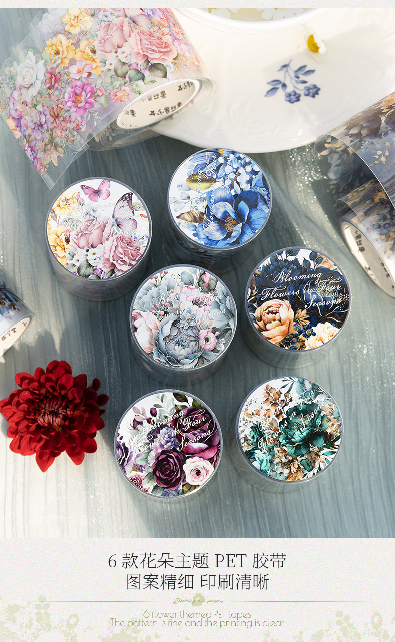 토마토 소스 애완 동물 테이프 꽃 사계절 시리즈 빛 복고풍 식물 꽃 장식 손 계정 DIY 풍경 콜라주스토어 가기