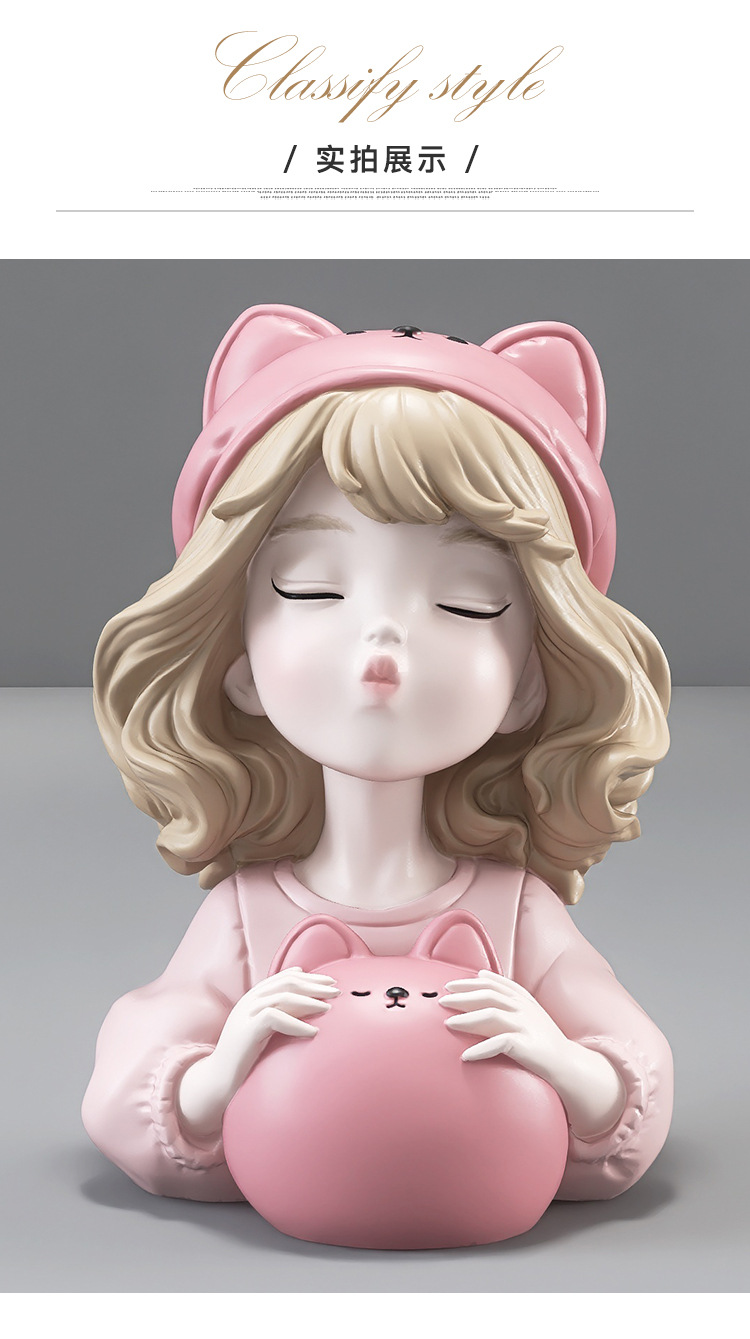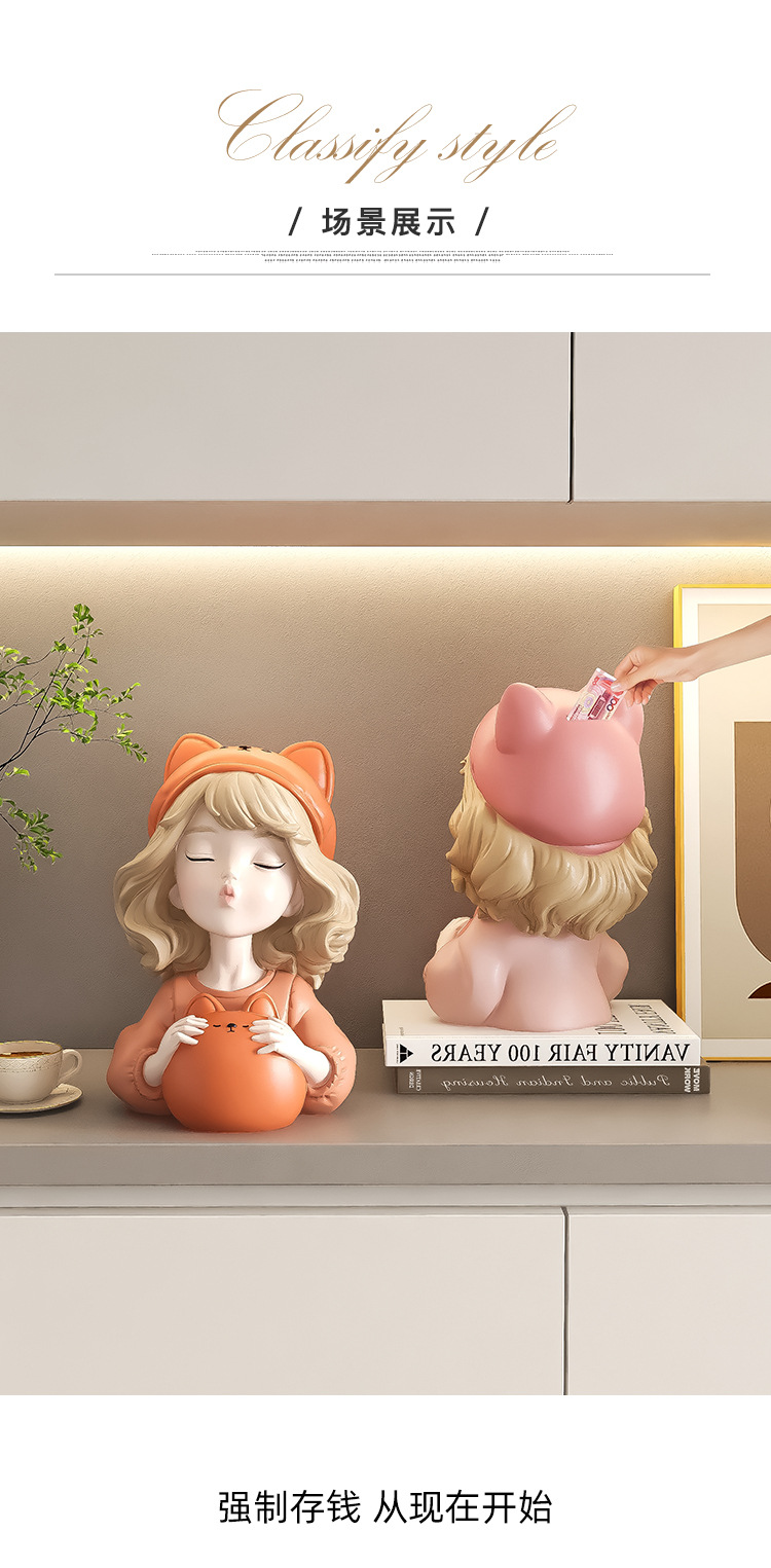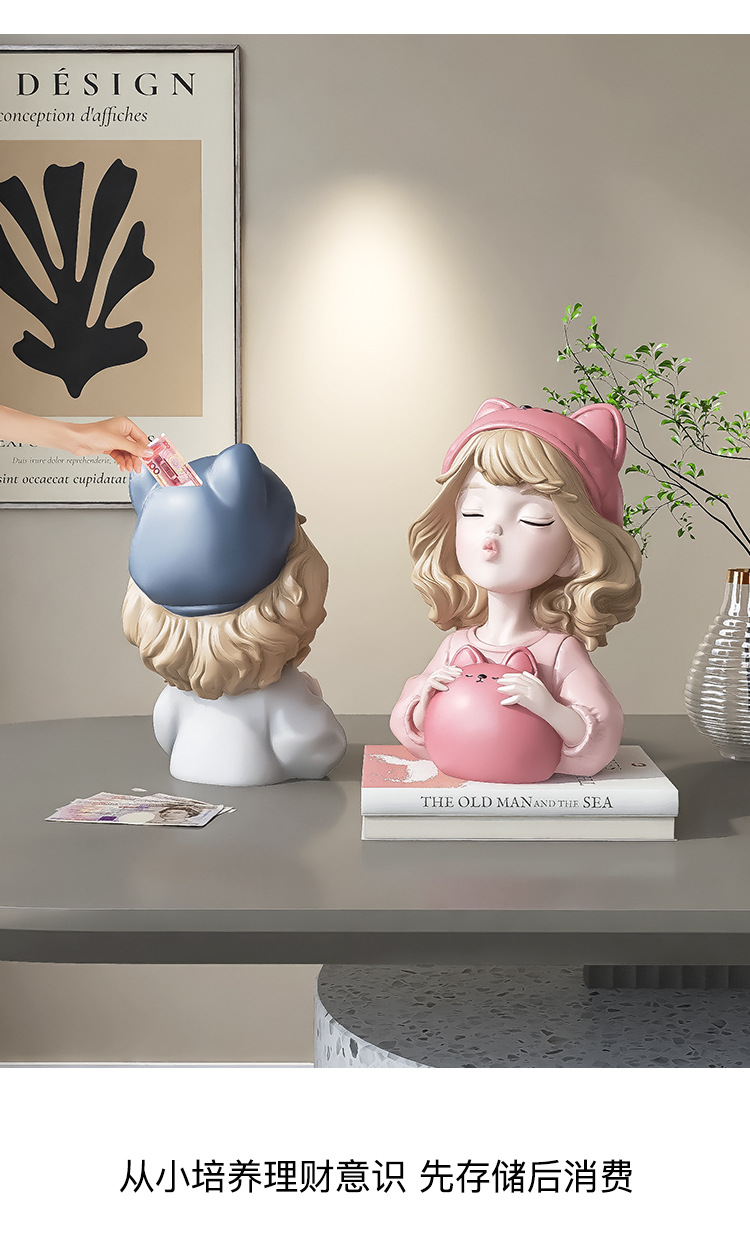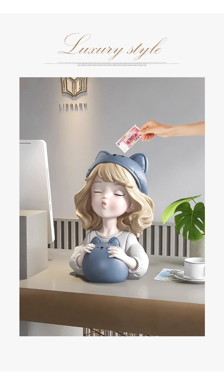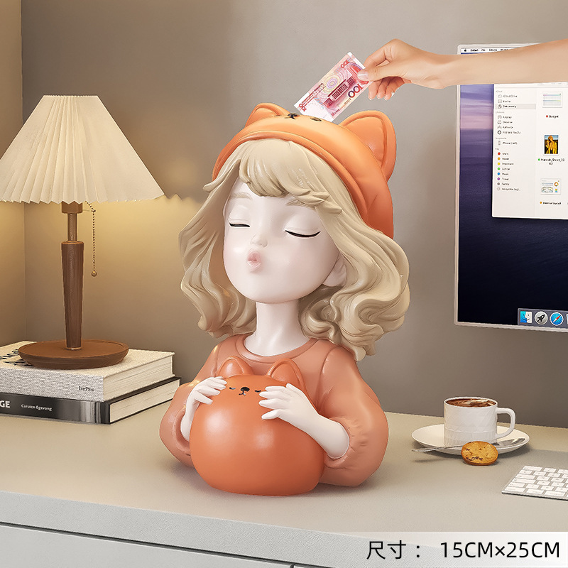 귀여운 소녀 돼지 저금통 장식품 홈 액세서리 거실 가정용 대형 인터넷 축하 돼지 저금통 어린이 생일 선물스토어 가기