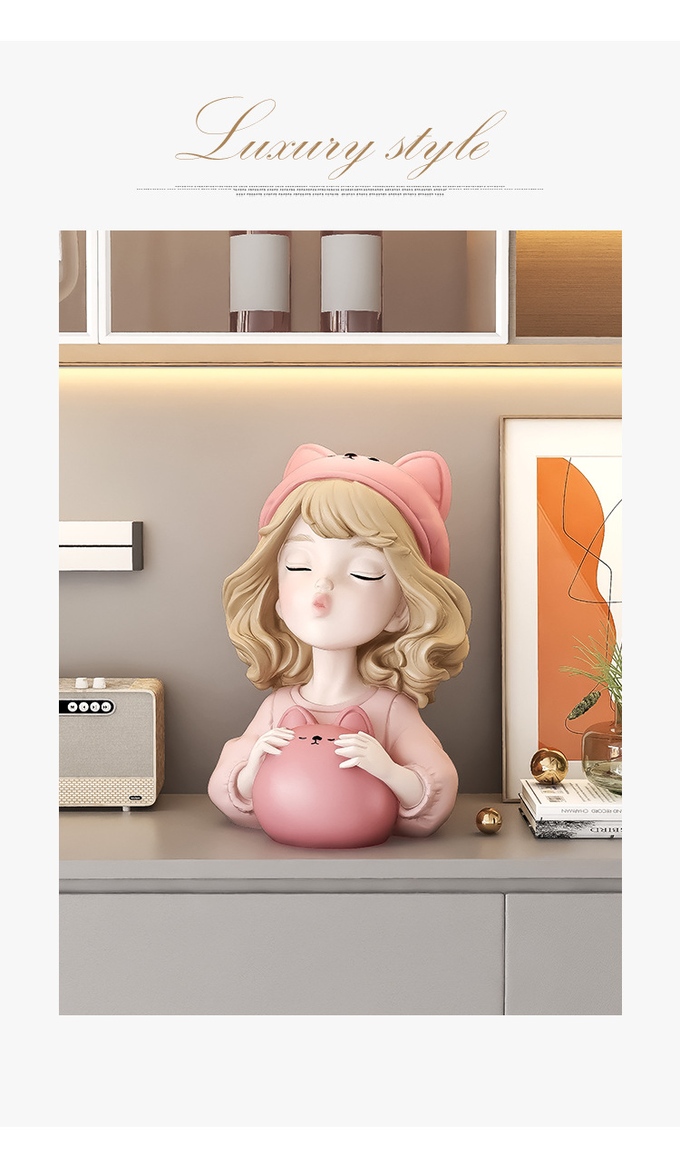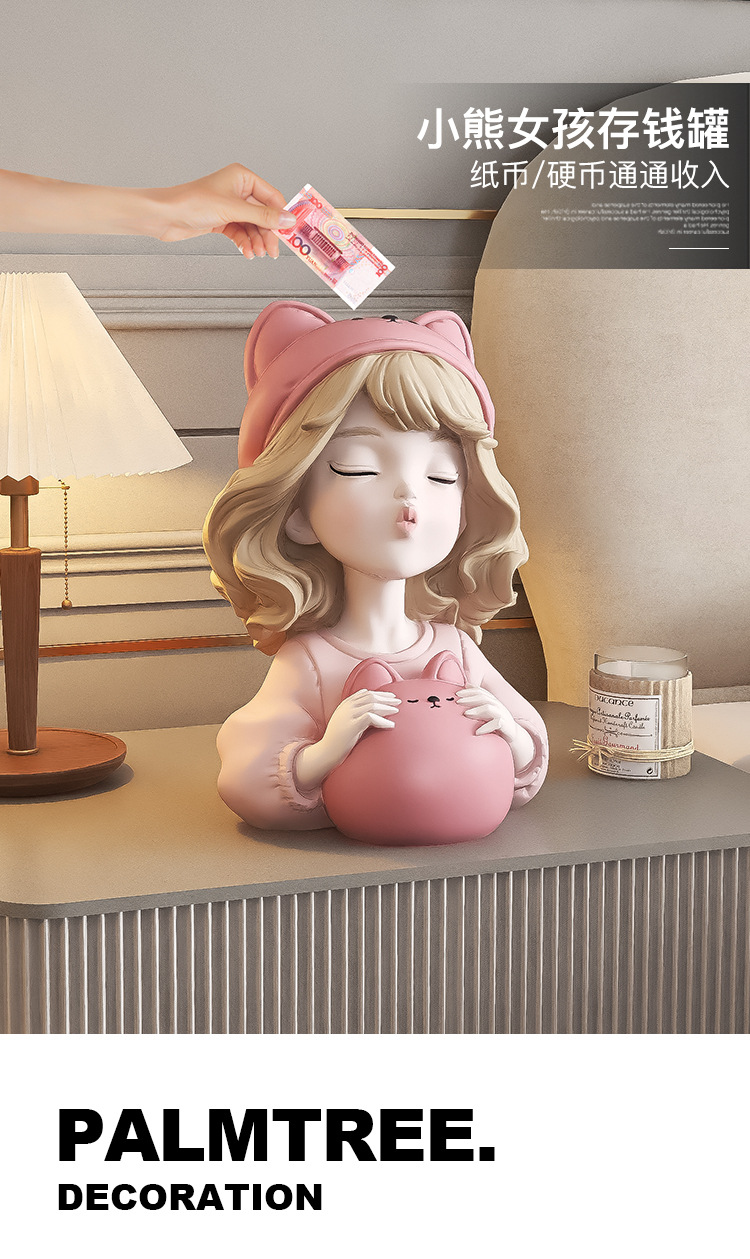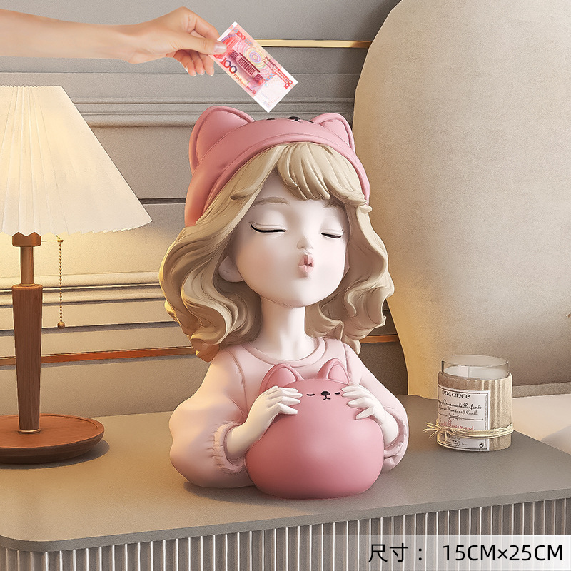 귀여운 소녀 돼지 저금통 장식품 홈 액세서리 거실 가정용 대형 인터넷 축하 돼지 저금통 어린이 생일 선물