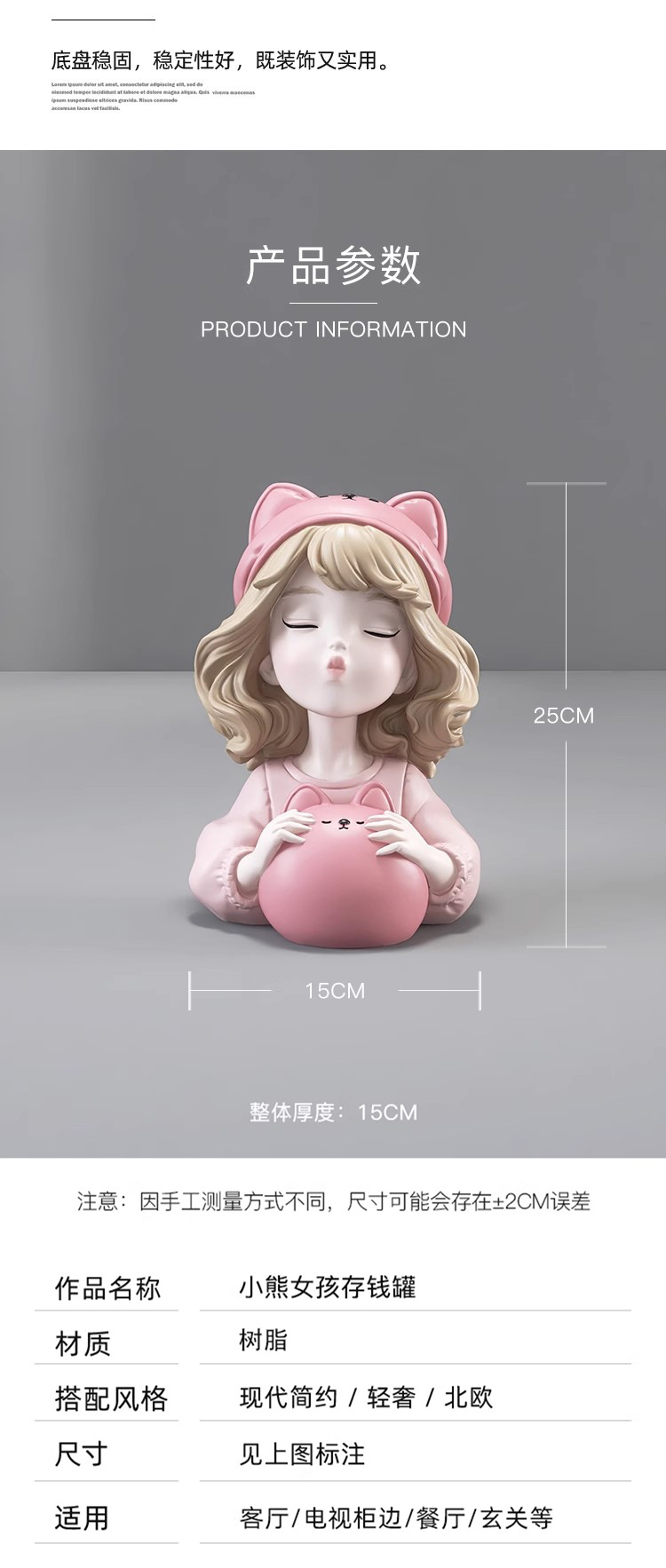 • 작은 곰 소녀 돼지 저금통-핑크 "높이 25cm]