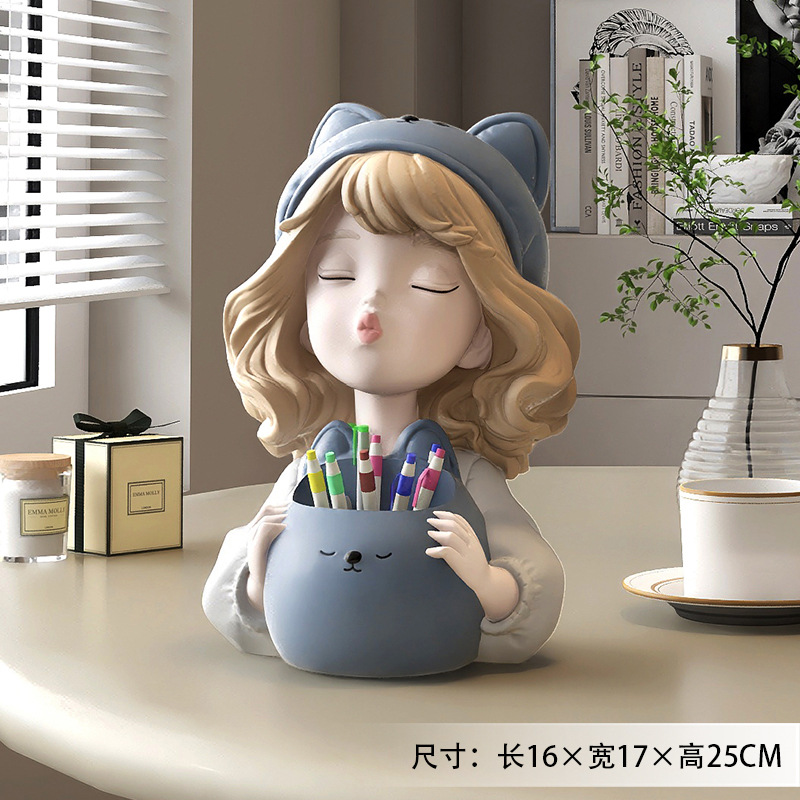 • 소녀 펜 컨테이너 장식품-파란색