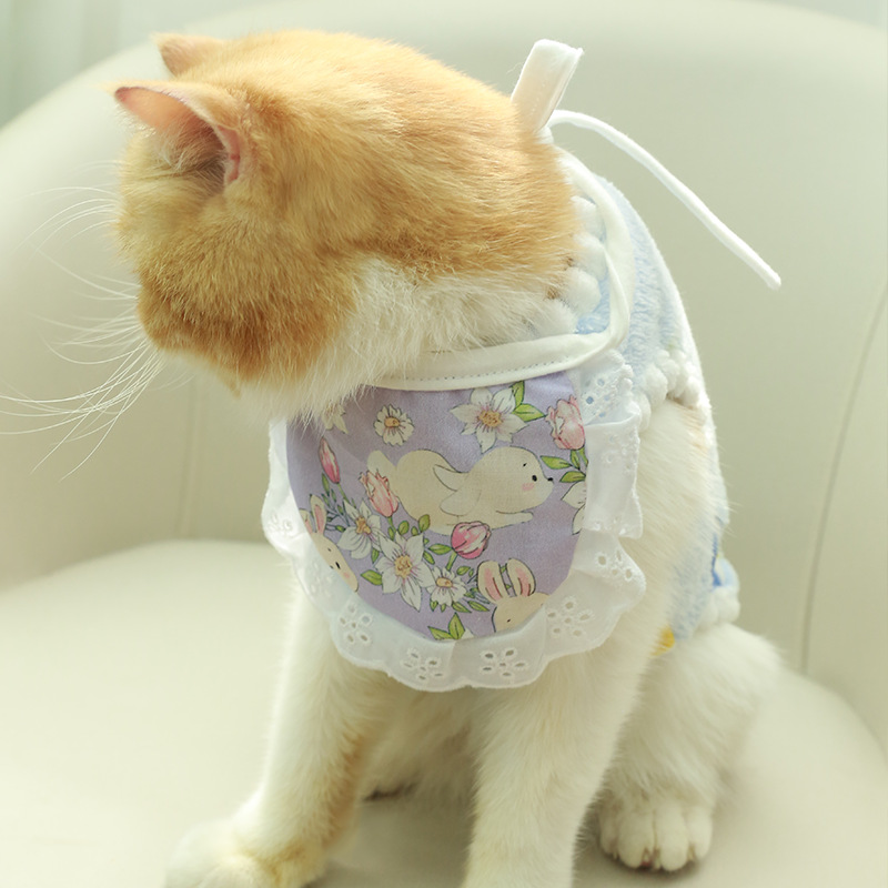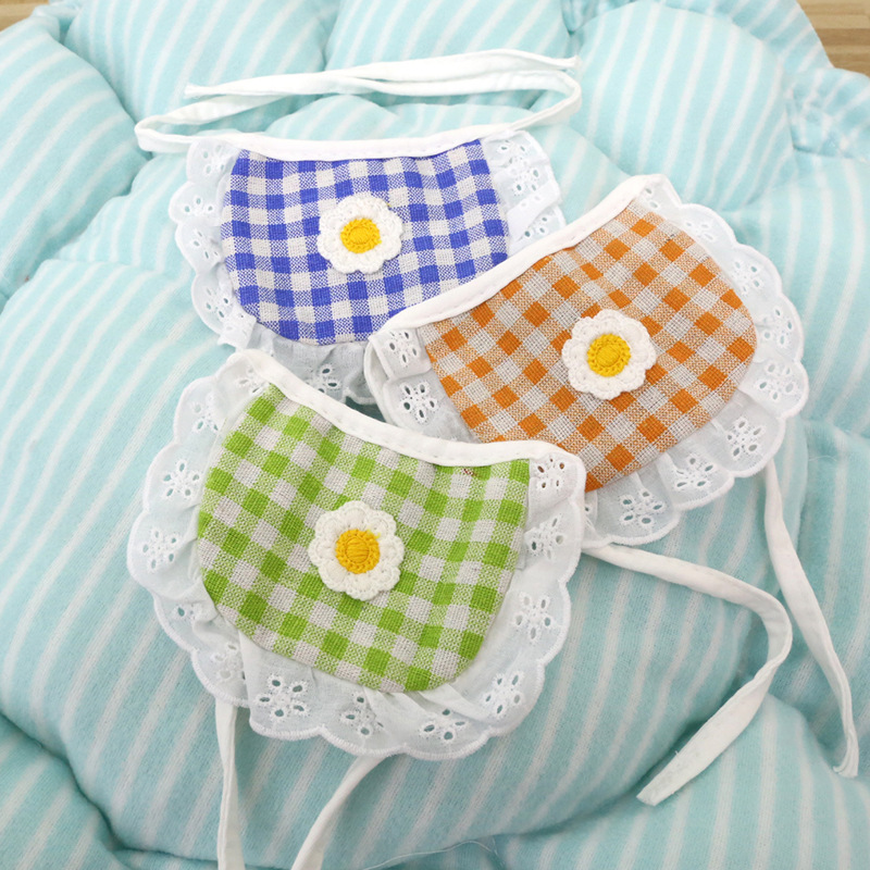 재고 공급 봄과 여름 애완 동물 고양이 타액 수건 레이스 장식 개 고양이 귀여운 격자 무늬 턱받이 도매