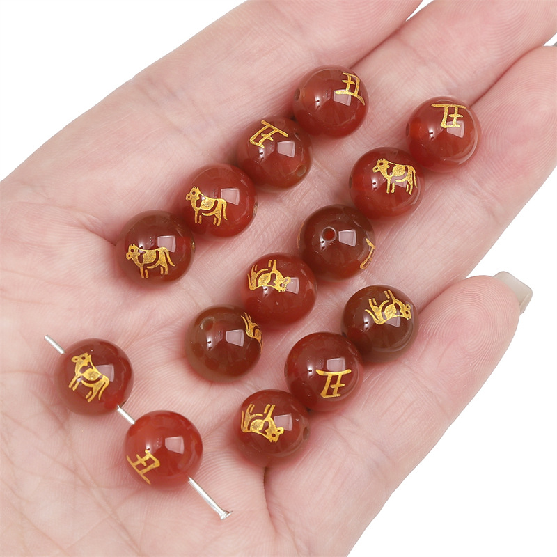 천연 붉은 마노 브론징 조디악 구슬 수제 DIY 빨간 로프 팔찌 조디악 구슬