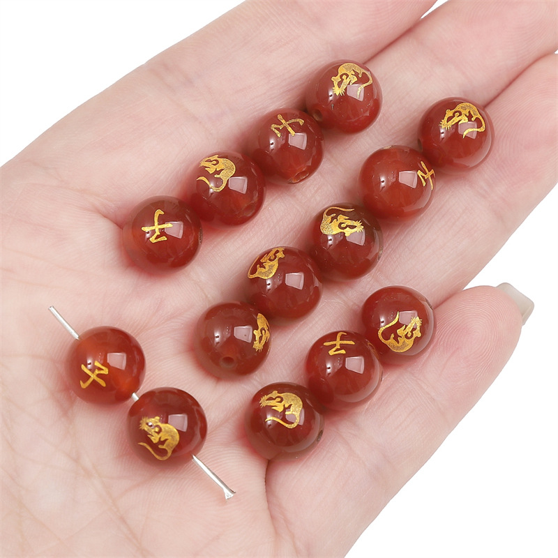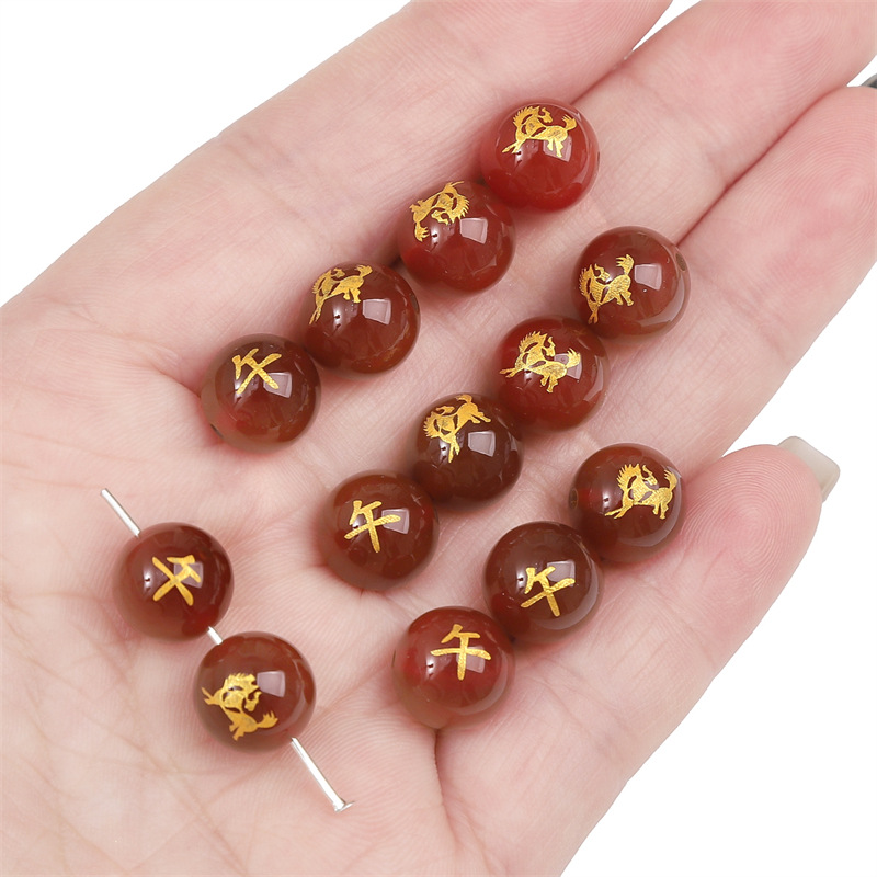 천연 붉은 마노 브론징 조디악 구슬 수제 DIY 빨간 로프 팔찌 조디악 구슬스토어 가기