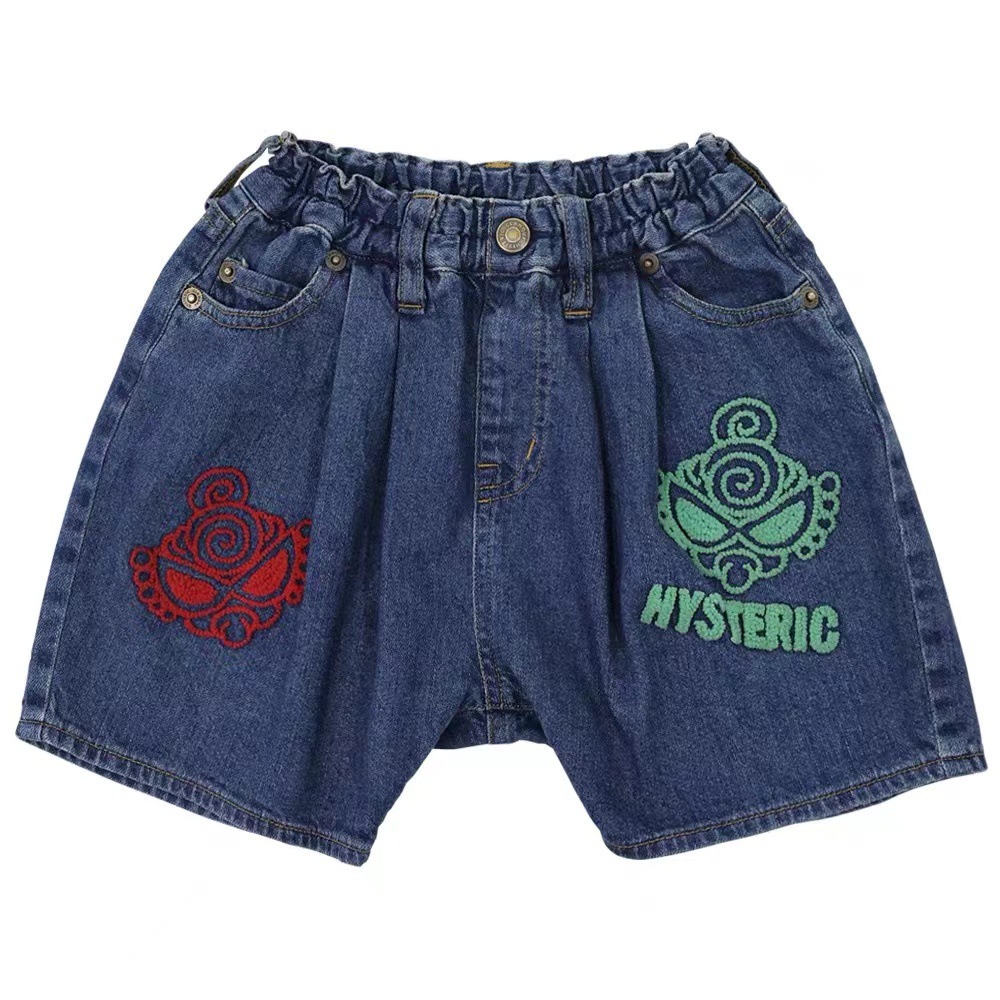[재고] 24 여름 조수 브랜드 높은 세트 아동복 블랙 슈퍼 컬러 큰 머리 면화 소년 소녀 데님 바지스토어 가기
