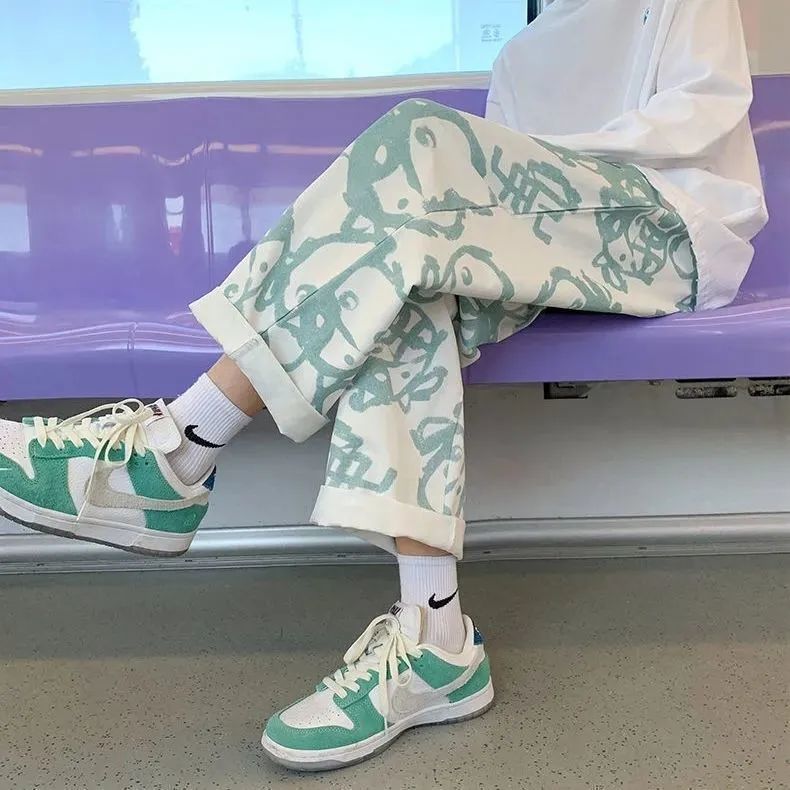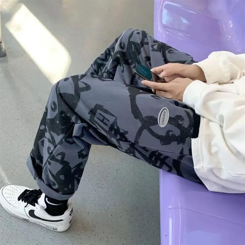 남자 바지 봄과 가을 넥타이-염료 인쇄 홍콩 스타일 대형 스포츠 바지 느슨한 캐주얼 트렌디 인 한국 스타일 느슨한 캐주얼 바지스토어 가기