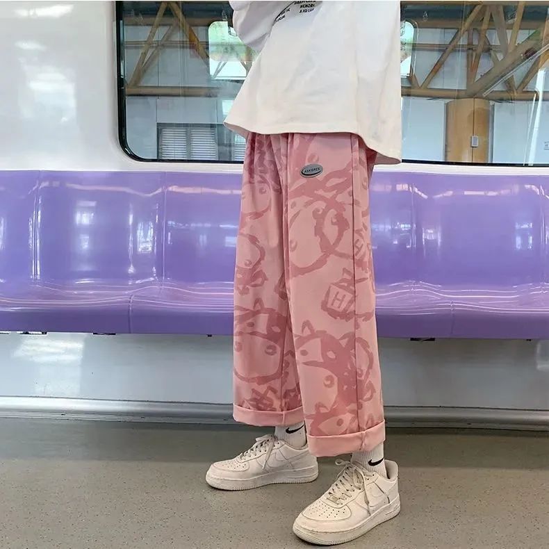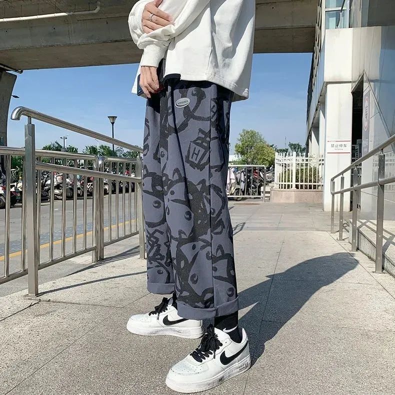 남자 바지 봄과 가을 넥타이-염료 인쇄 홍콩 스타일 대형 스포츠 바지 느슨한 캐주얼 트렌디 인 한국 스타일 느슨한 캐주얼 바지
