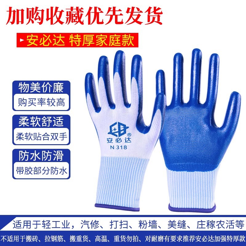 장갑 노동 보호 작업 내마모성 고무 고무 고무 고무 노동 작업 장갑 플라스틱 미끄럼 방지 고무 교수형 장갑 무료 배송스토어 가기