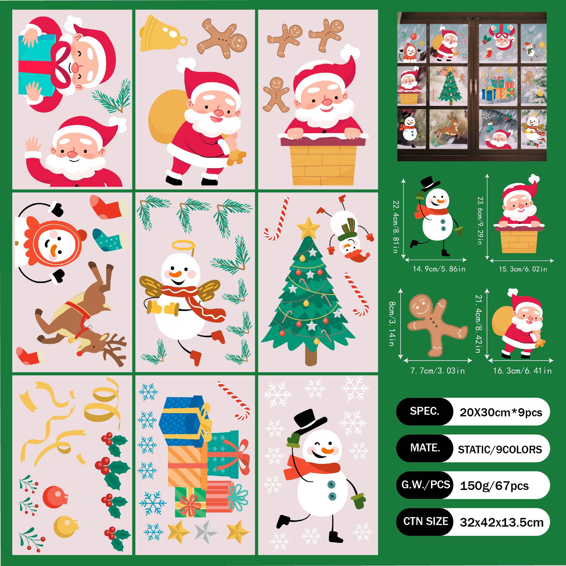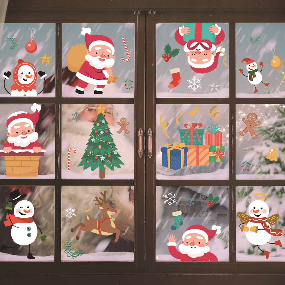 Yiyao DD2411 산타 클로스 눈사람 유리 스티커 분위기 장식 크리스마스 장식 몰 창 스티커
