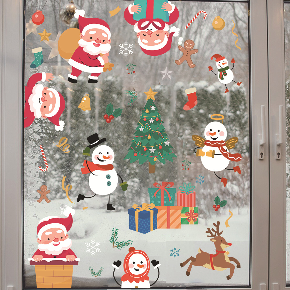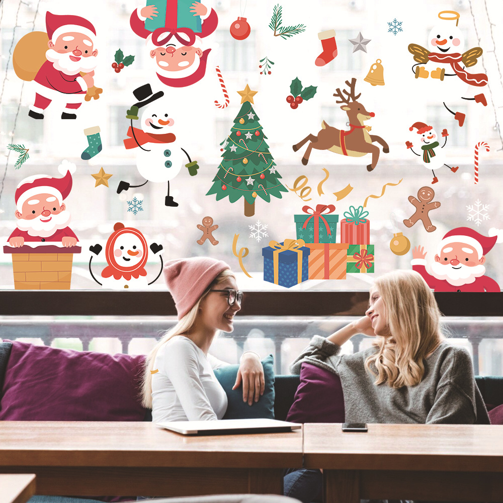 Yiyao DD2411 산타 클로스 눈사람 유리 스티커 분위기 장식 크리스마스 장식 몰 창 스티커스토어 가기