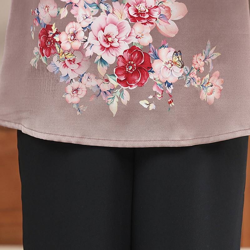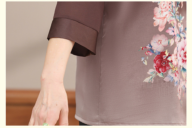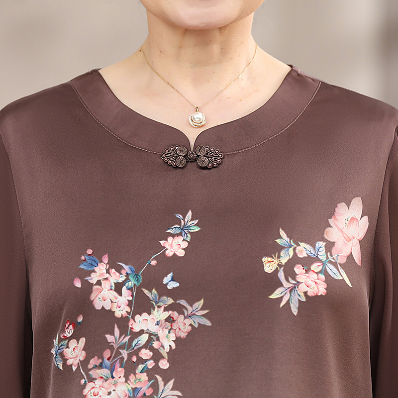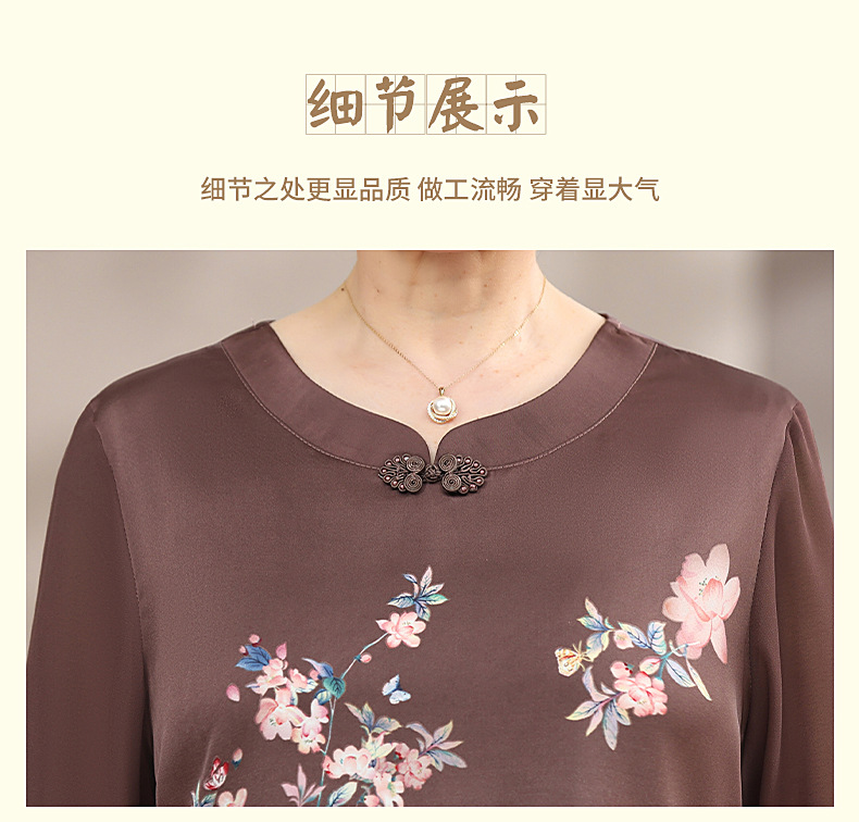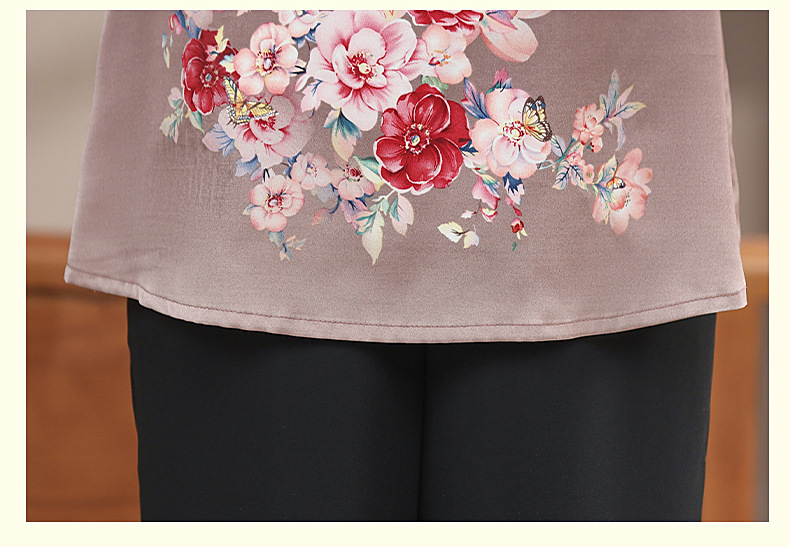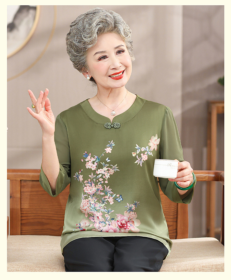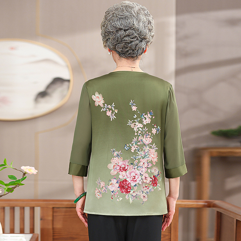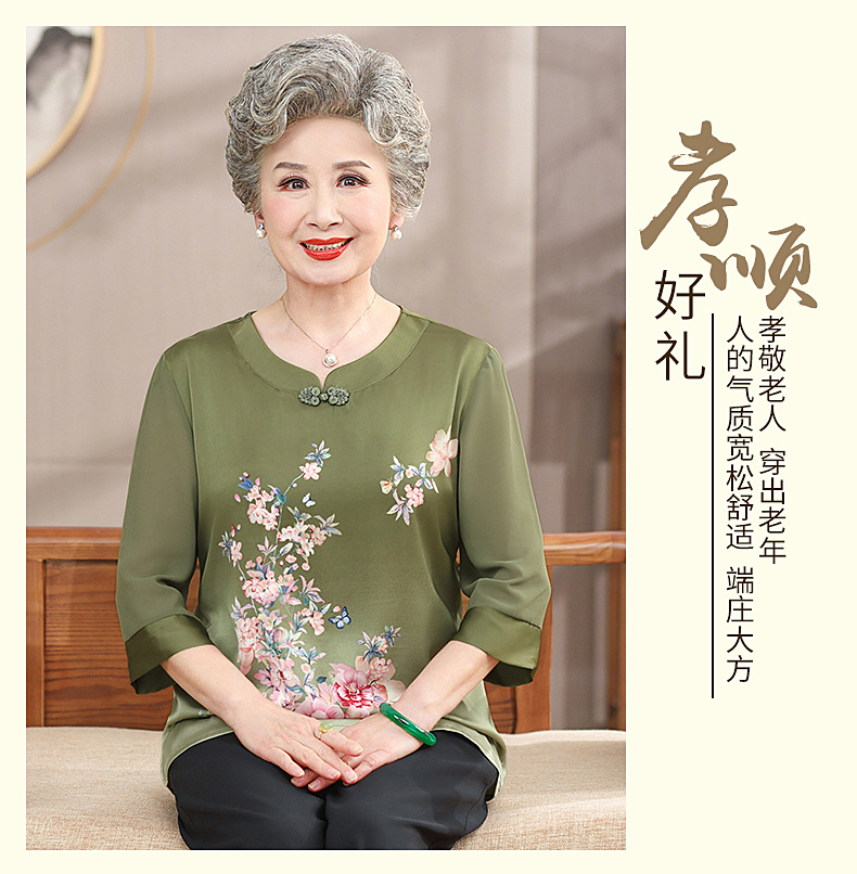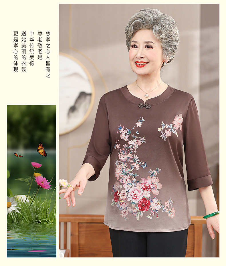 할머니 여름 반팔 여성 중년 및 노인 시폰 티셔츠 엄마 2024 새로운 라운드 넥 작은 노인 서양 스타일