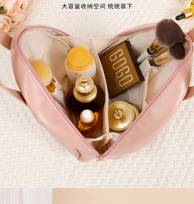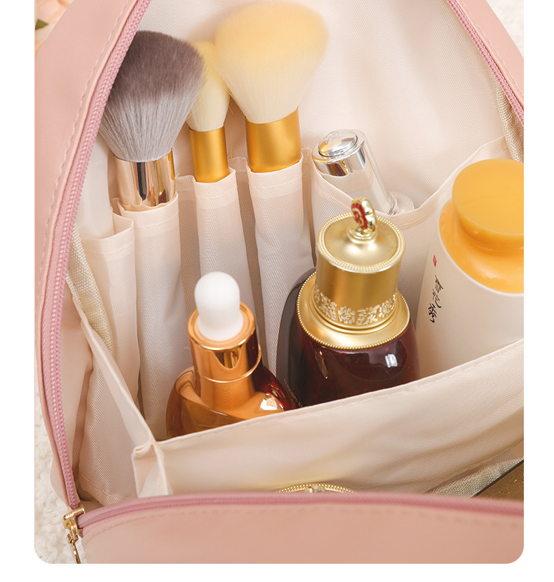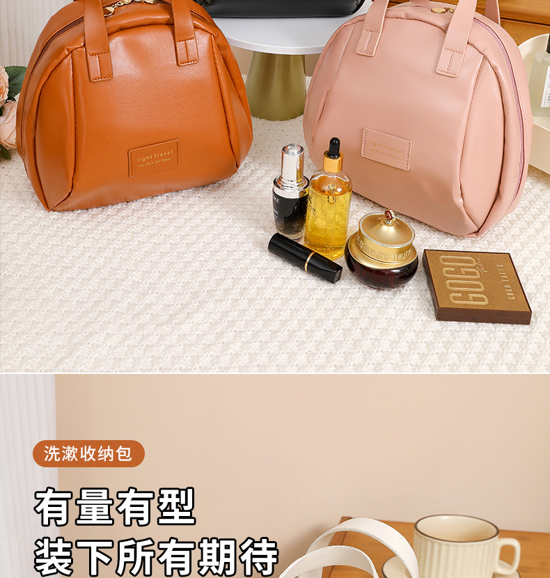 큰 배꼽 쉘 화장품 가방, 높은 외관, 대용량, 휴대용 및 귀여운 화장품 보관 가방, 여행용 세면 용품 화장품 가방