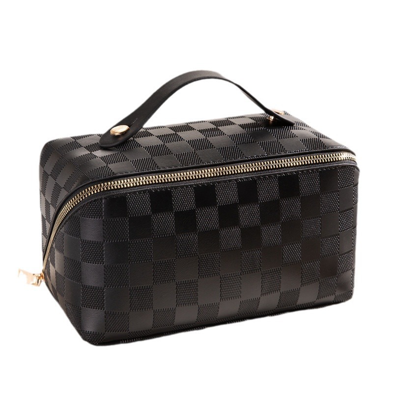 • 검은 베개 화장품 가방 (체크 무늬)
