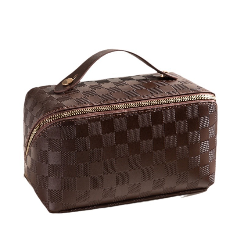 • 다크 브라운 베개 화장품 가방 (체크 무늬)