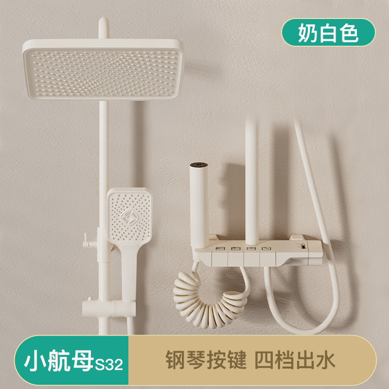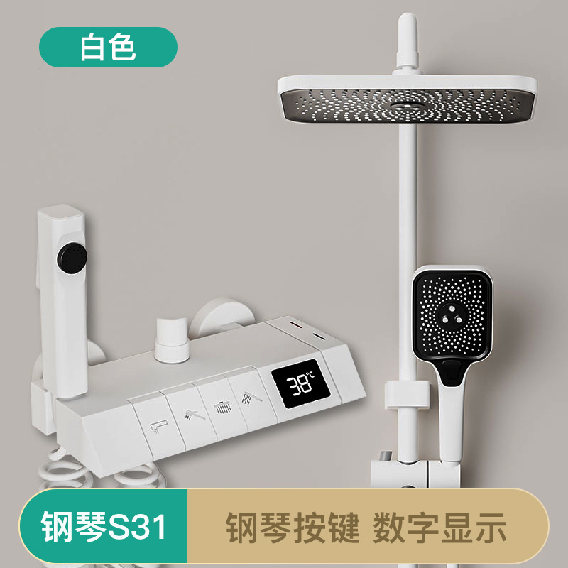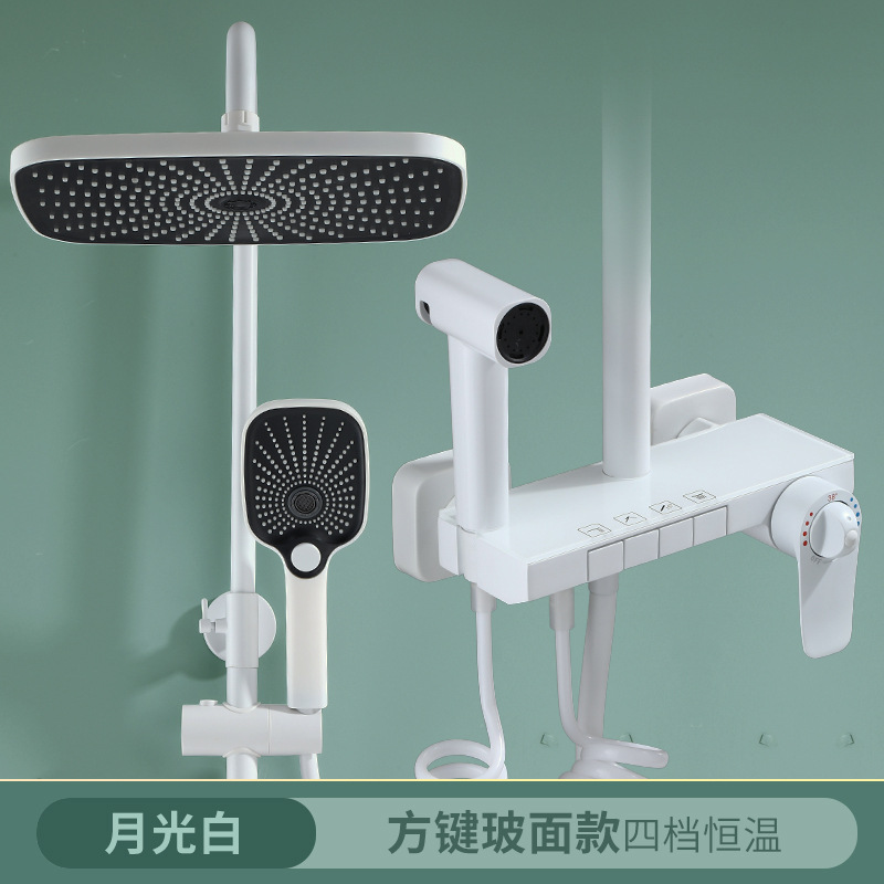 우윳빛 백색 분위기 조명 샤워기 세트, 황동 온도조절 가압 디지털 디스플레이 피아노 버튼 샤워기스토어 가기