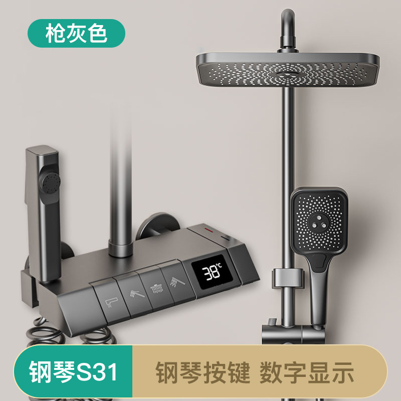 枪灰色数显冷热淋浴花洒套装水镀家用黄铜淋浴器浴室淋雨增压花洒
