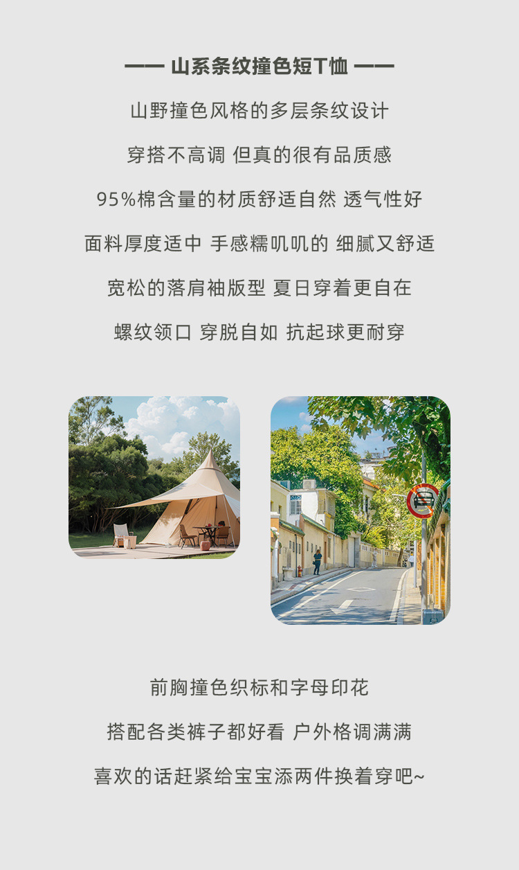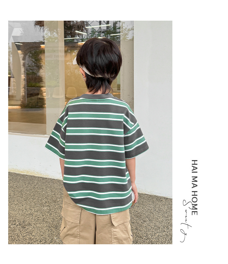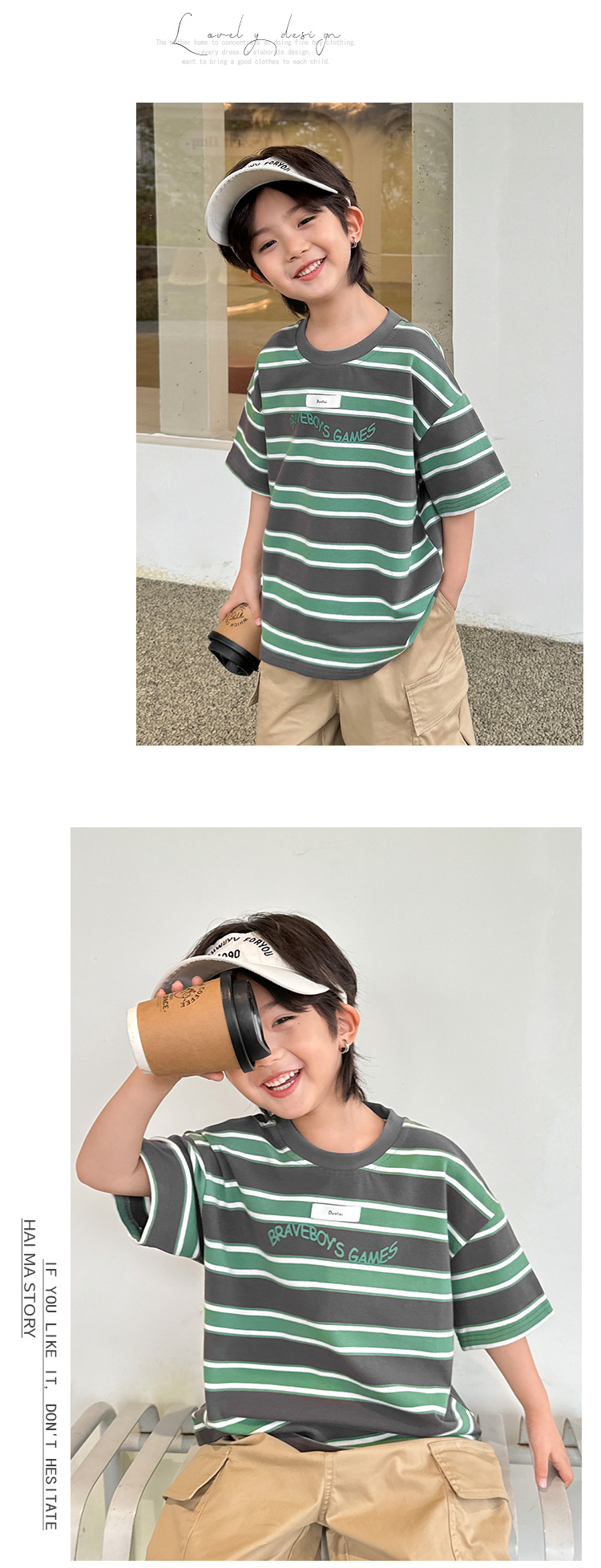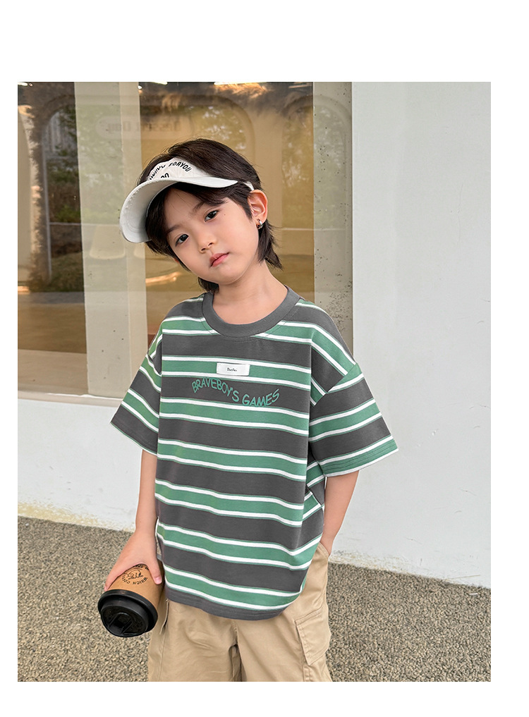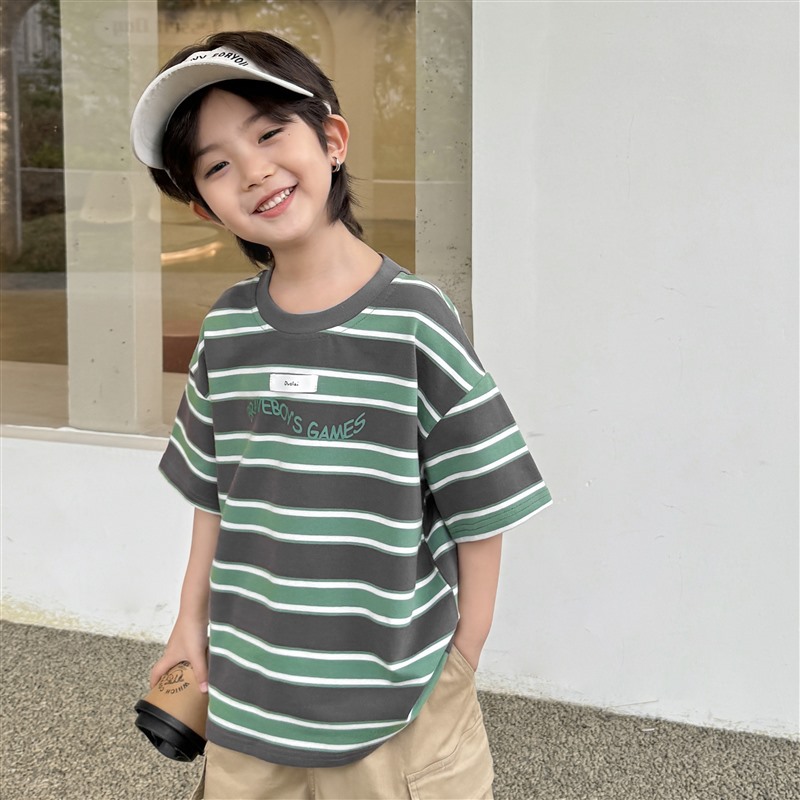 Haima의 2025 년 여름 새 소년 코튼 스트라이프 반팔 티셔츠 한국식 여름 옷스토어 가기