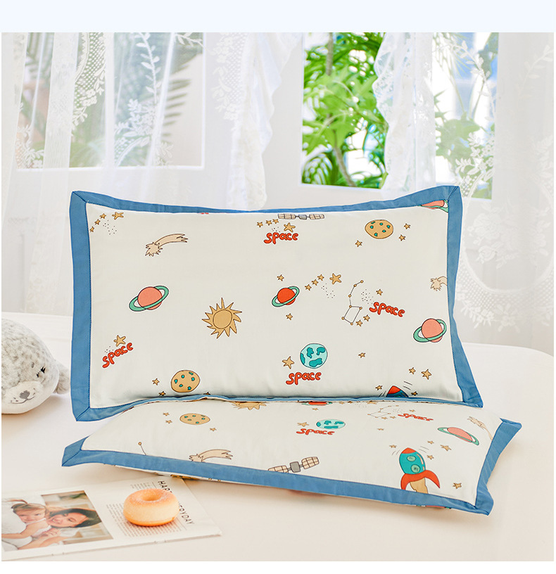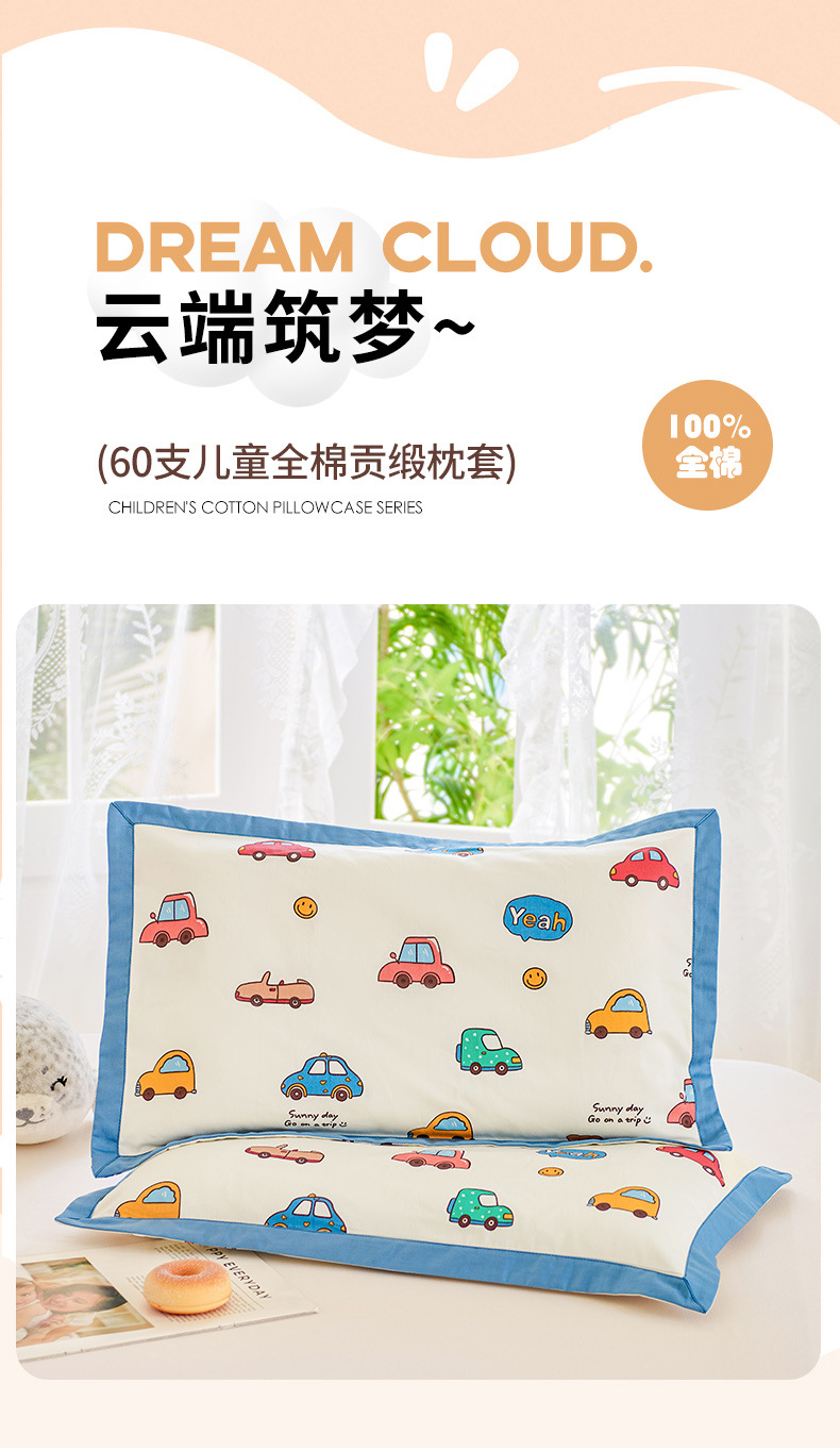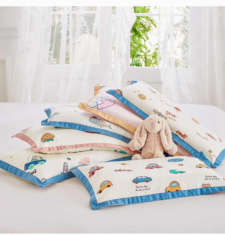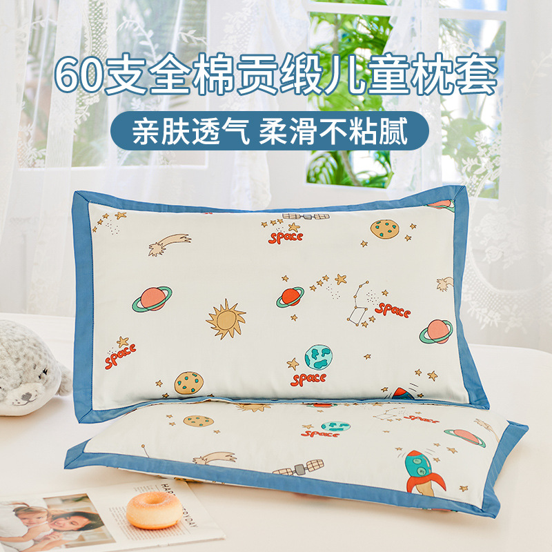 새로운 어린이 베갯면화 60S 긴 스테이플 코튼 어린이 베개 케이스 학생 베개 케이스 만화 아기 베개 수건 땀 흡수성