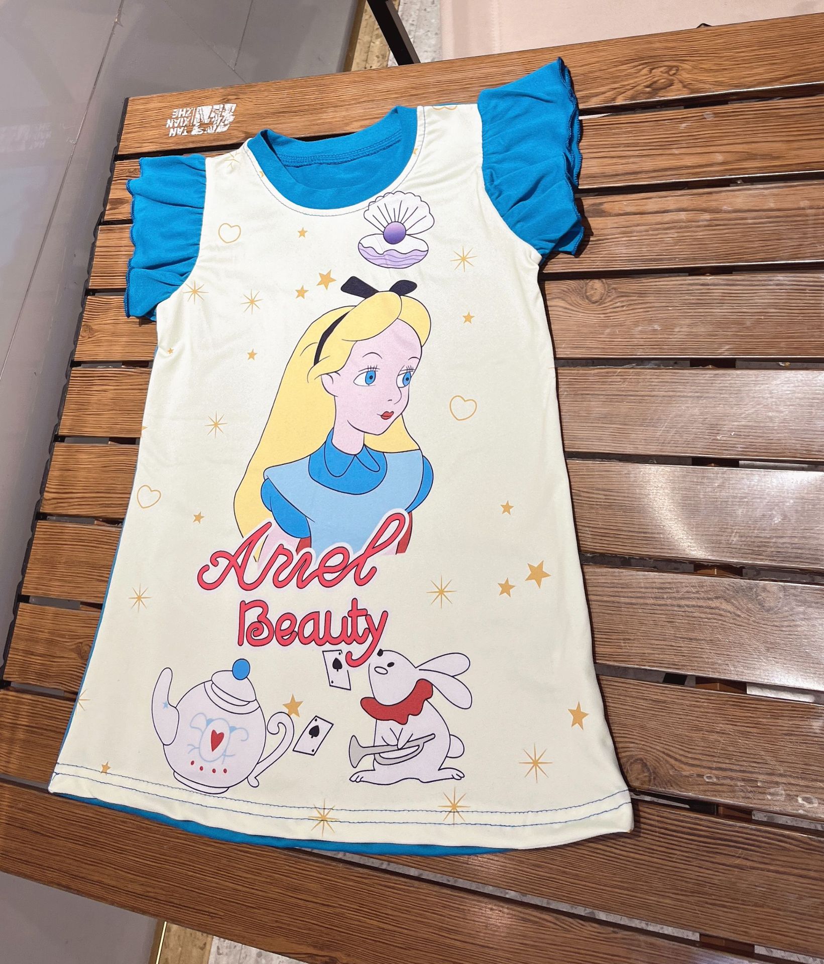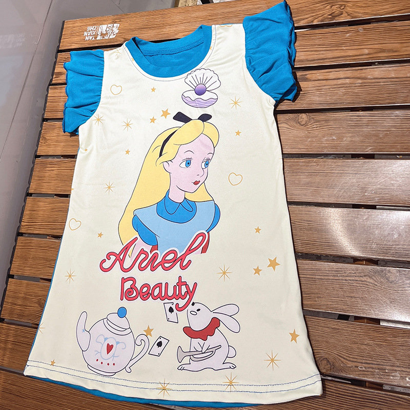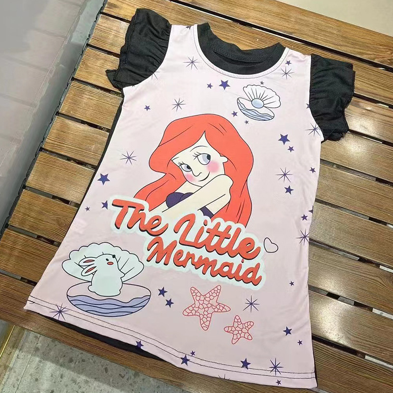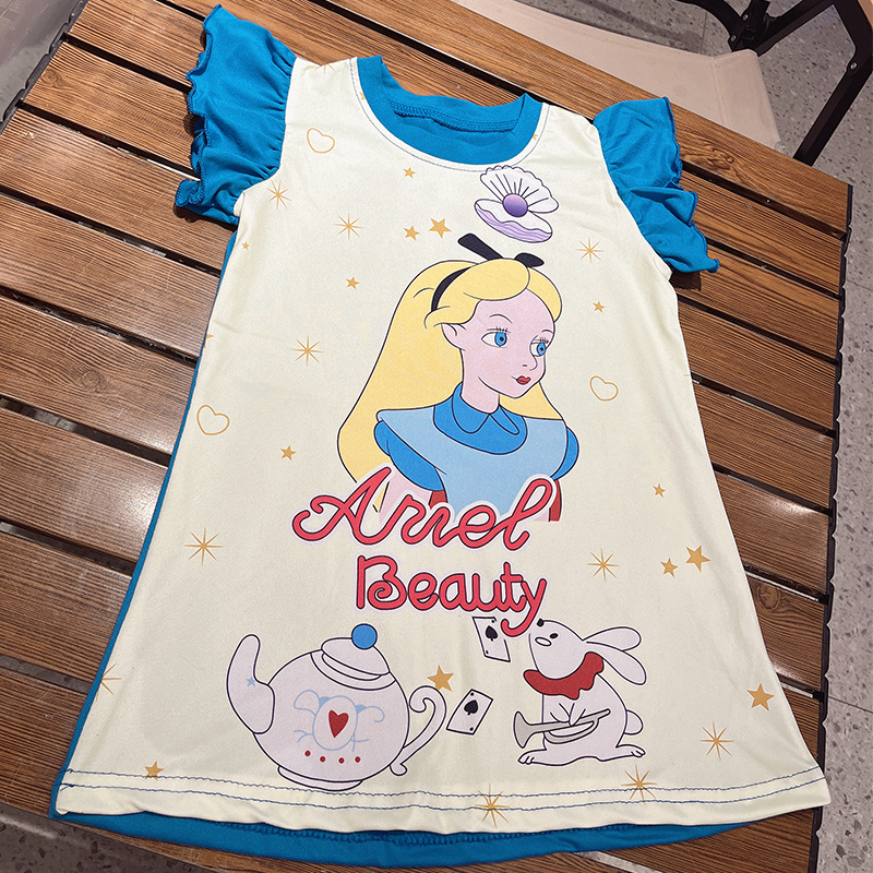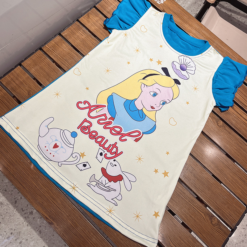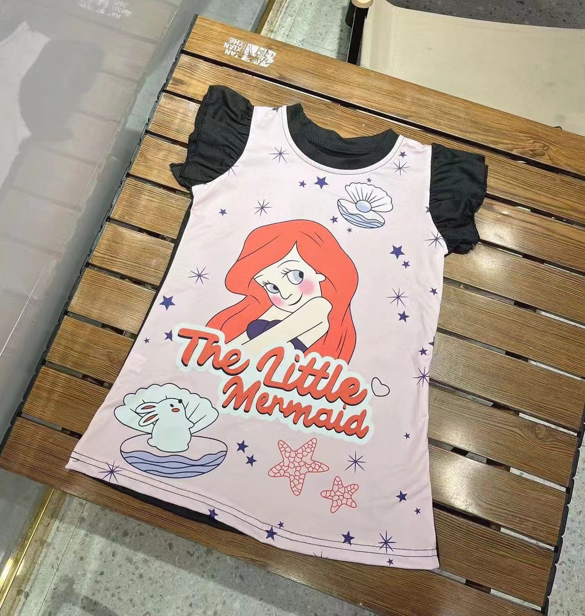 캐주얼 만화 티셔츠 롱 스커트 여름 소녀 공주 드레스 소녀 귀여운 프린트 드레스 서양식 새로운 캐주얼스토어 가기