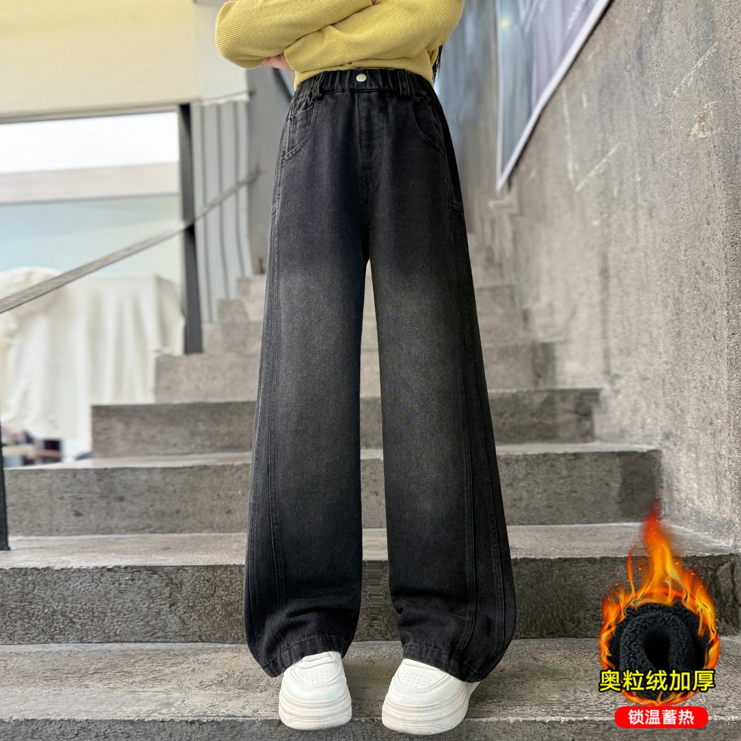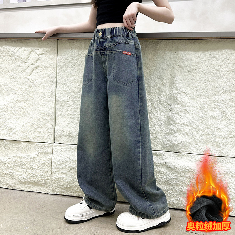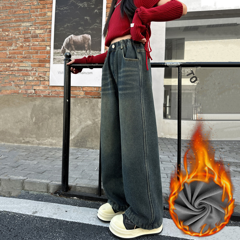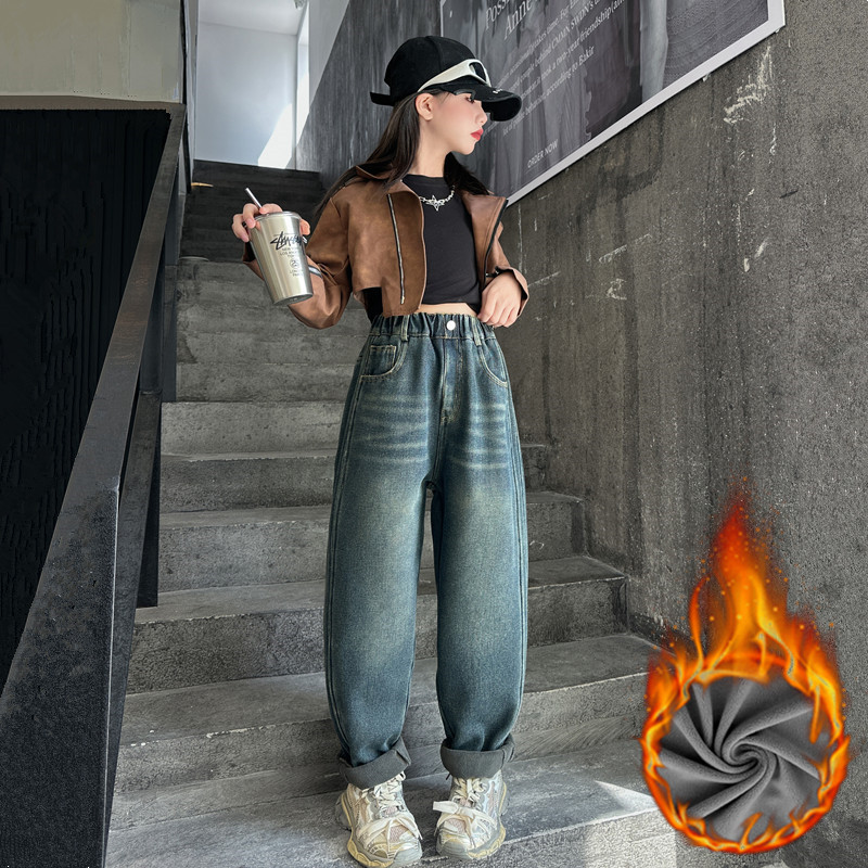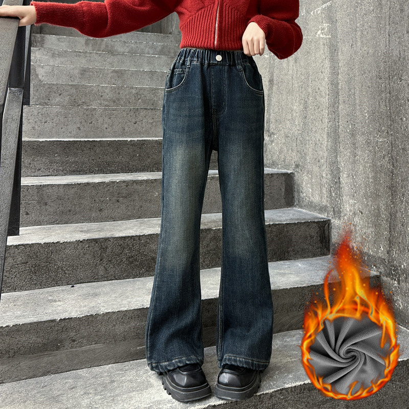 여아용 데님 팬츠 겨울 2025 신상 외출복 가을 겨울 아동복 긴바지 겨울용 기모 안감 두꺼운 바지