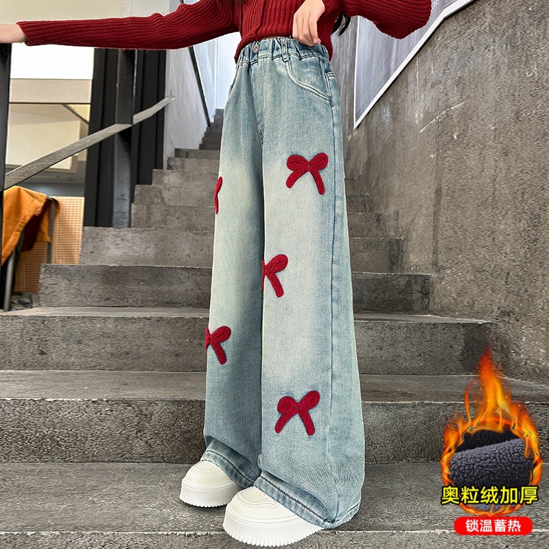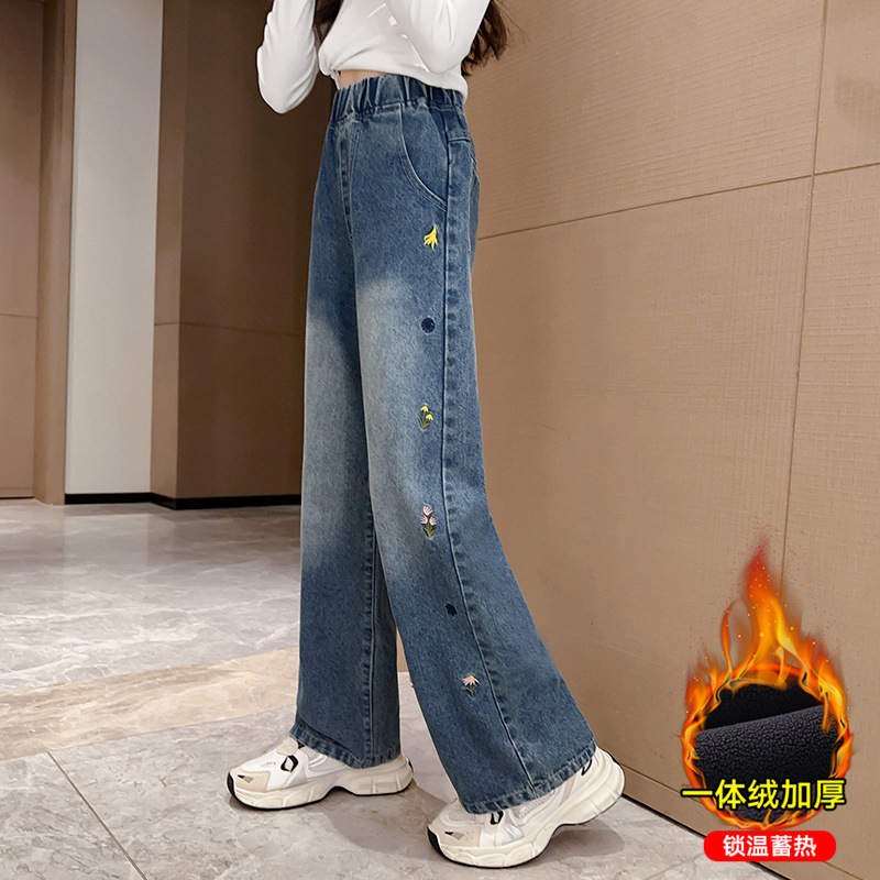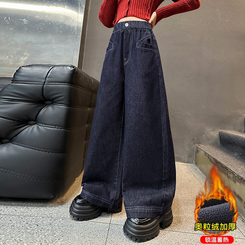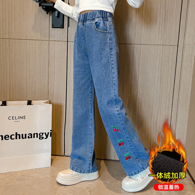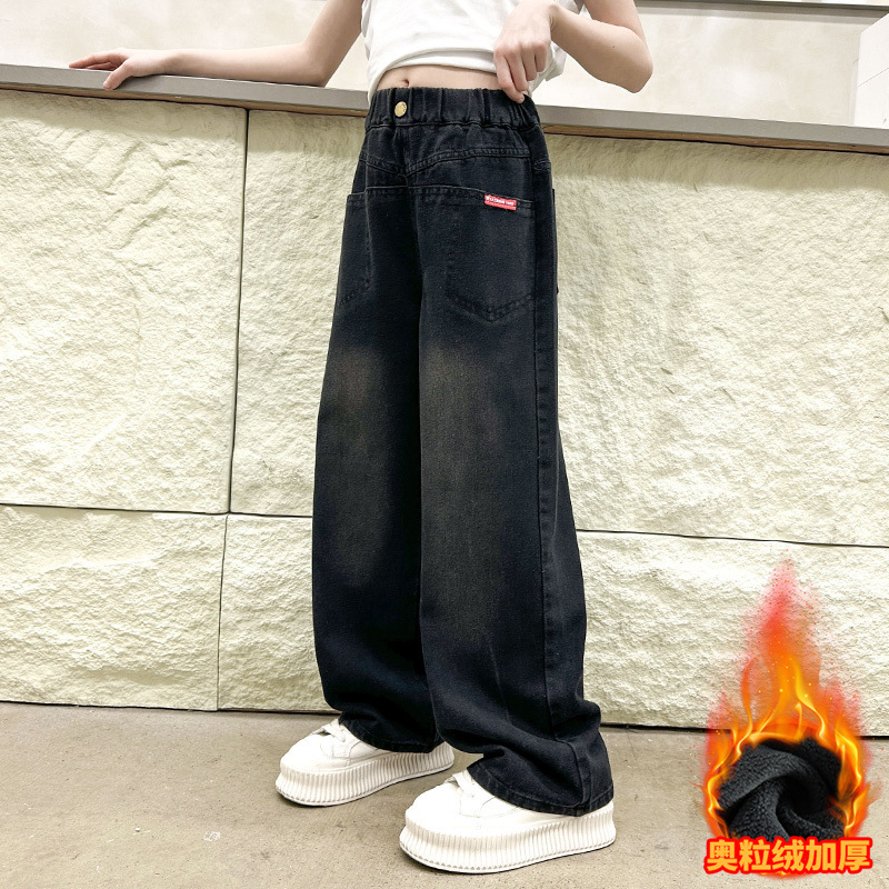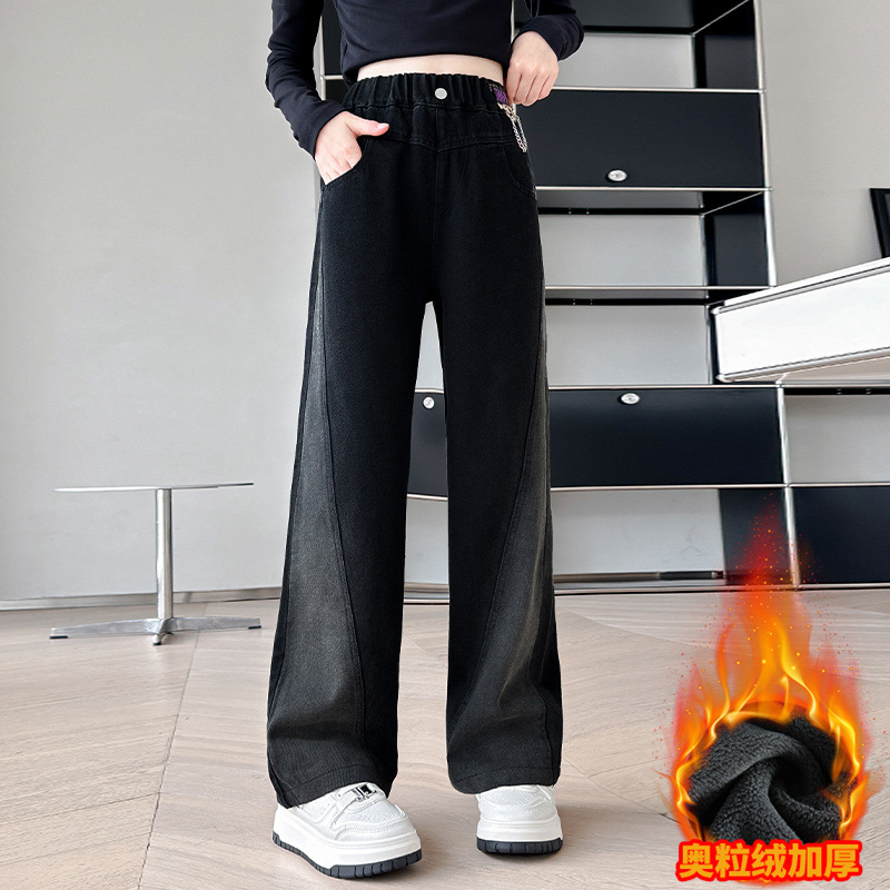 여아용 데님 팬츠 겨울 2025 신상 외출복 가을 겨울 아동복 긴바지 겨울용 기모 안감 두꺼운 바지