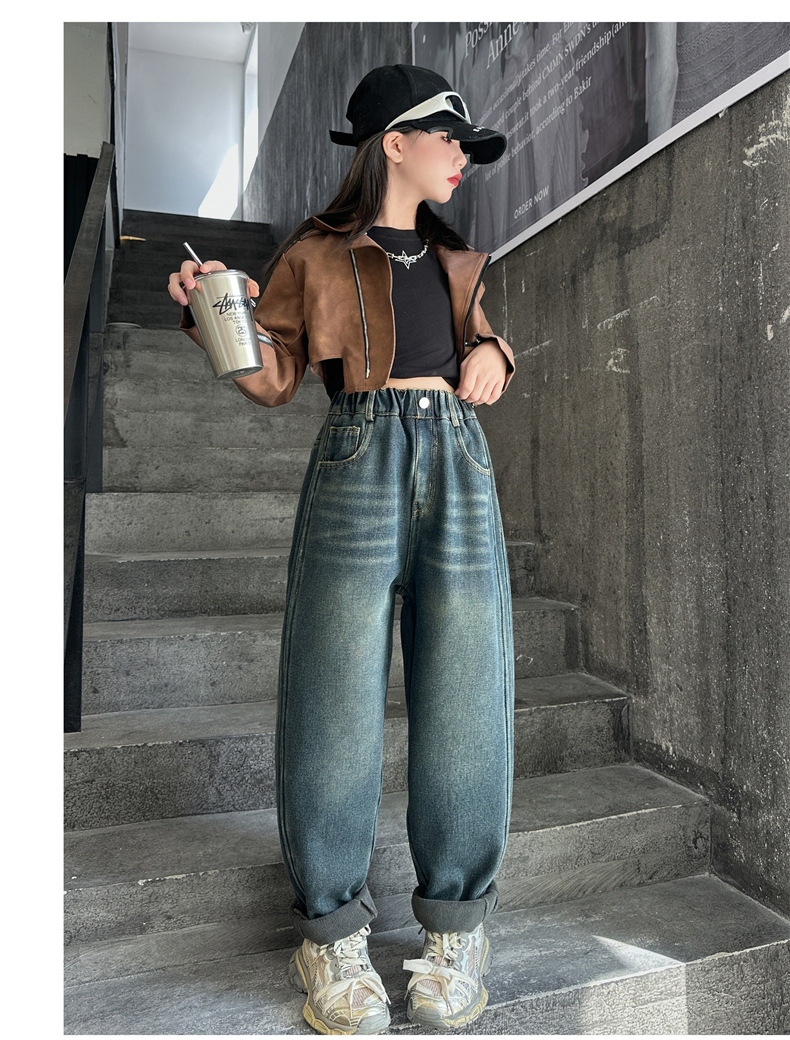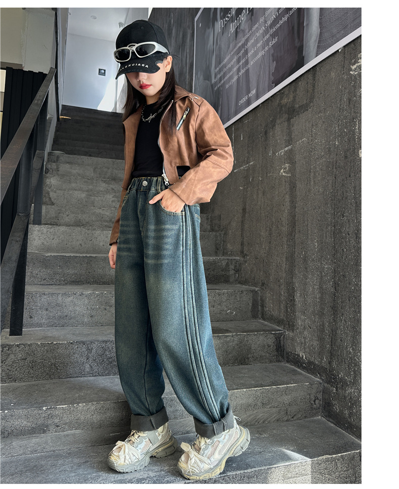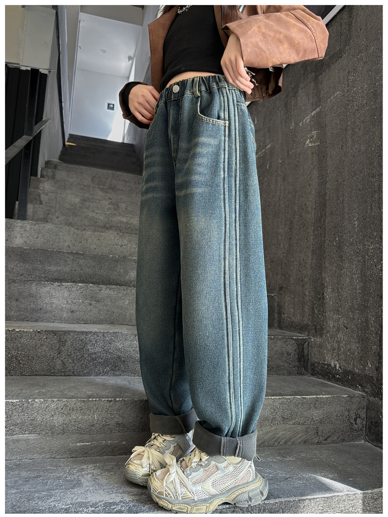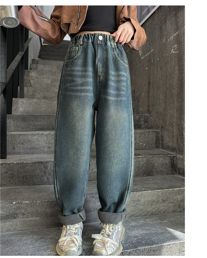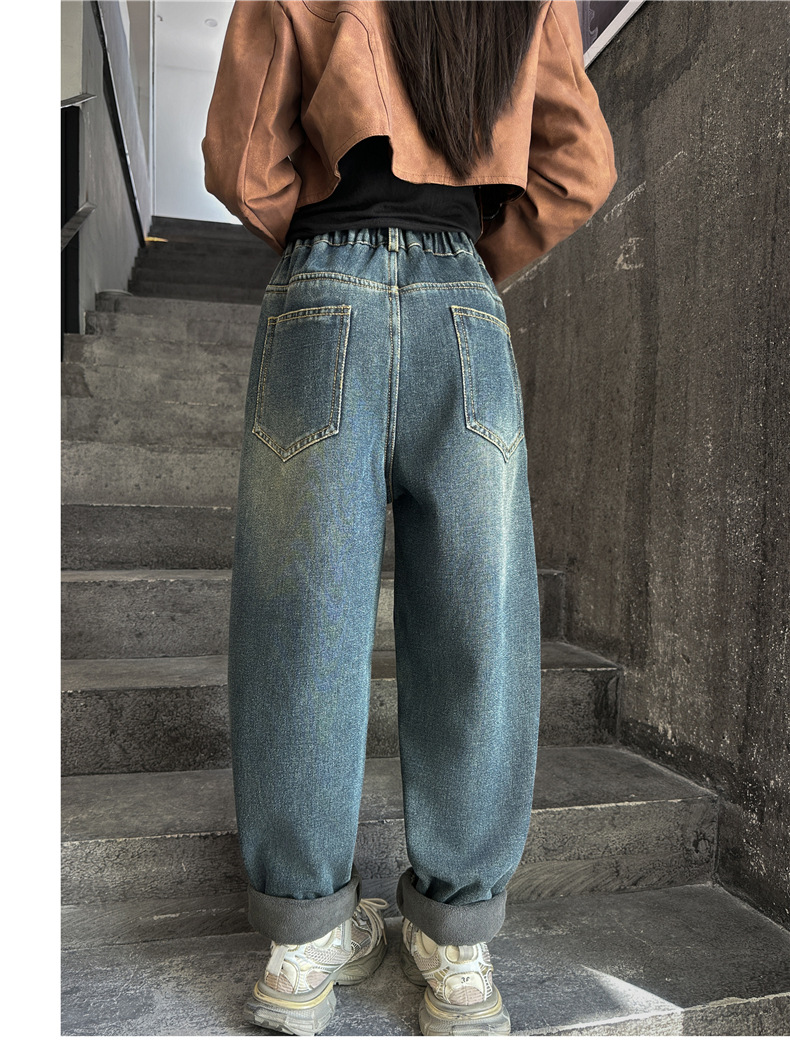 여아용 데님 팬츠 겨울 2025 신상 외출복 가을 겨울 아동복 긴바지 겨울용 기모 안감 두꺼운 바지스토어 가기
