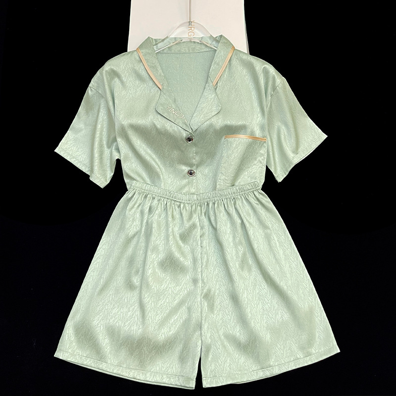 국경 간 여름 얼음 실크 잠옷 숙녀 새로운 하이 엔드 달콤한 간단한 얇은 짧은 소매 홈 의류 세트 도매