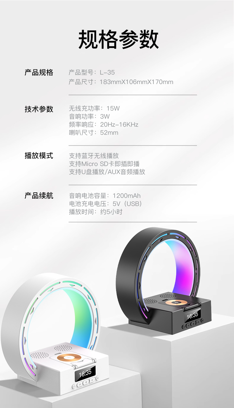 L-35 휴대폰 충전 무선 블루투스 스피커 가정용 침대 옆 램프 테이블 램프 알람 시계 생일 선물 창의적인 소형 스피커스토어 가기