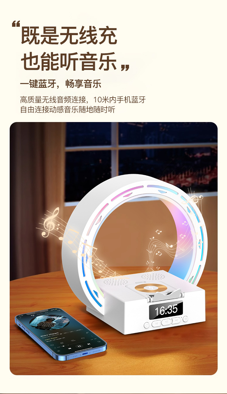 L-35 휴대폰 충전 무선 블루투스 스피커 가정용 침대 옆 램프 테이블 램프 알람 시계 생일 선물 창의적인 소형 스피커