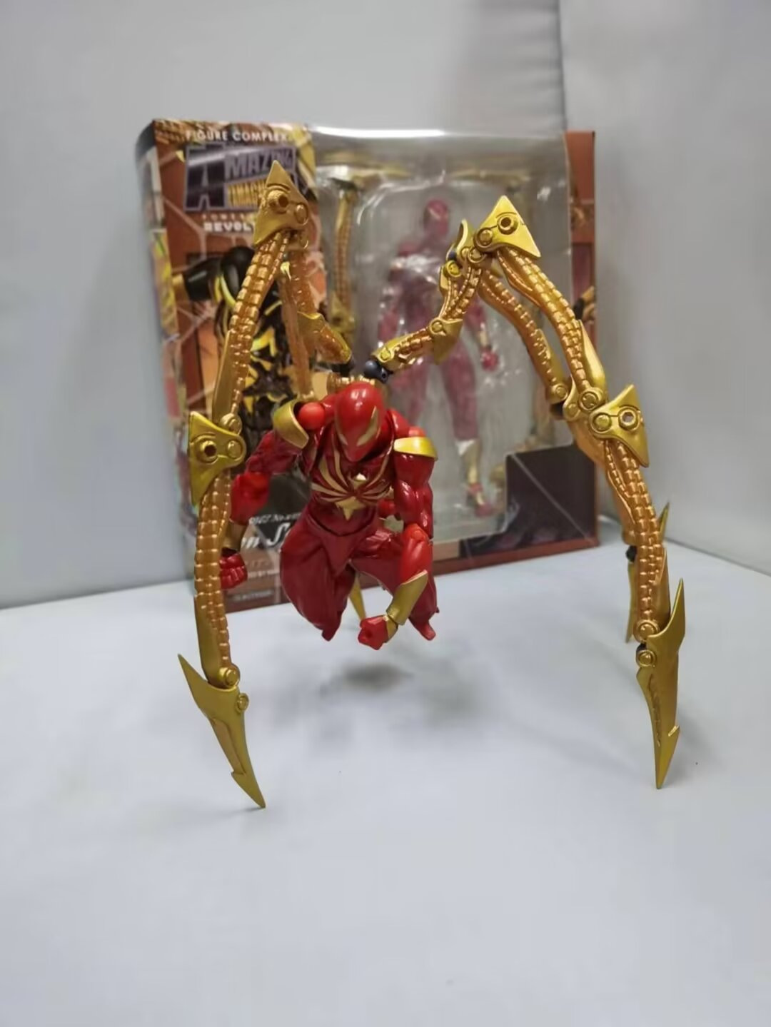 新款现货钢铁蜘蛛红色,彩盒尺寸21x7x21厘米,高度14厘米,箱数90个,重量300k新款现货钢铁蜘蛛红色,彩盒尺寸21x7x21厘米,高度14厘米,箱数90个,重量300g