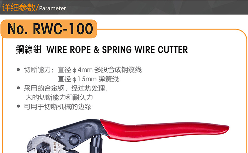 일본 루비 콘 로빈 후드 스틸 케이블 전단 멀티 스트랜드 전기 와이어 로프 절단기 웨이헤 스틸 와이어 클램프 RWC-100