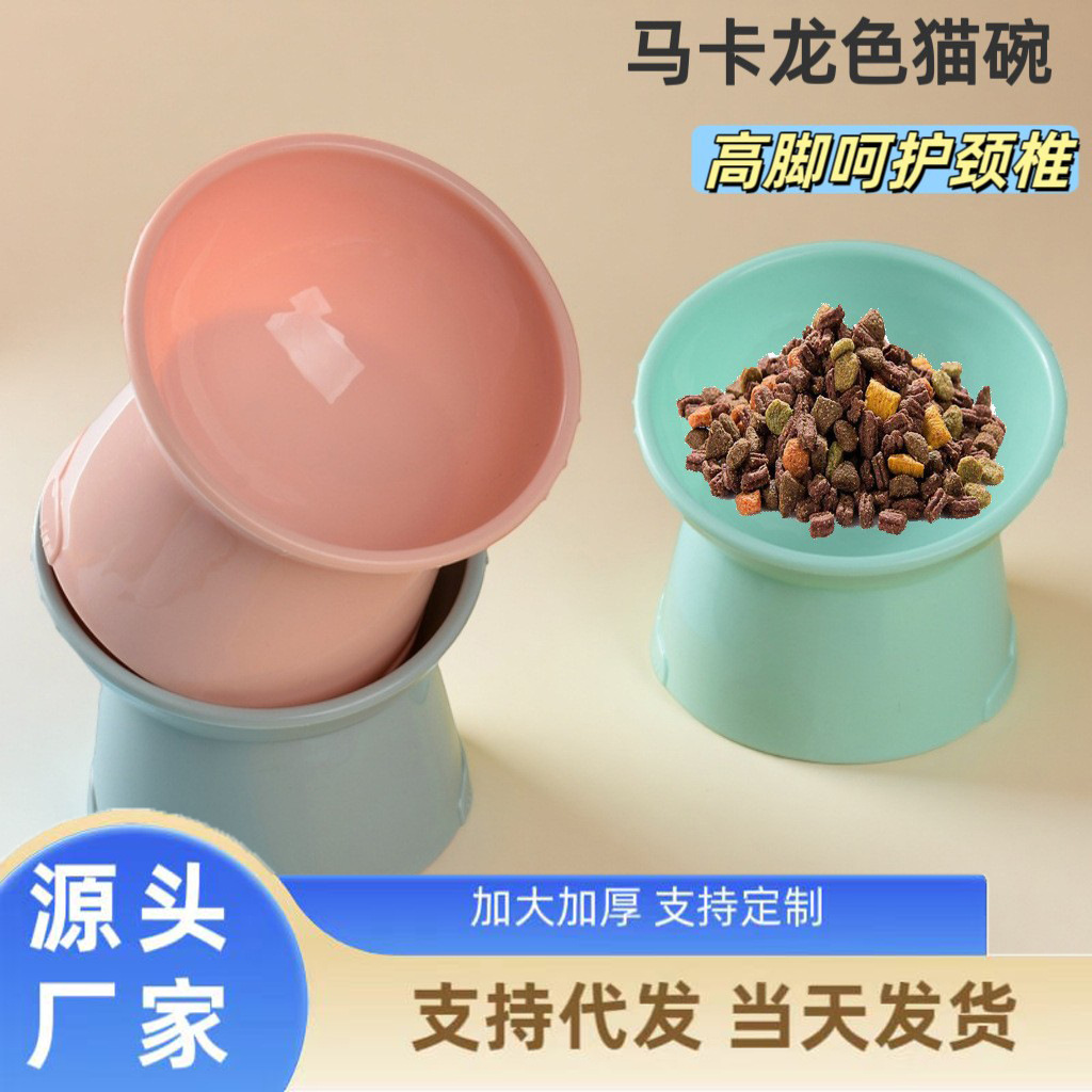 둥근 애완동물 그릇, 높은 고양이 그릇, 만화 북유럽 스타일 경사진 그릇, 목 보호대, 플라스틱 고양이 및 개 먹이 그릇스토어 가기