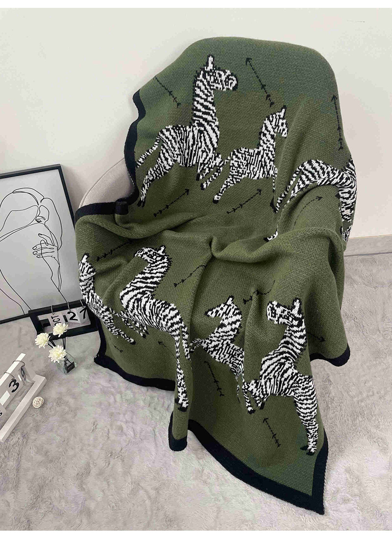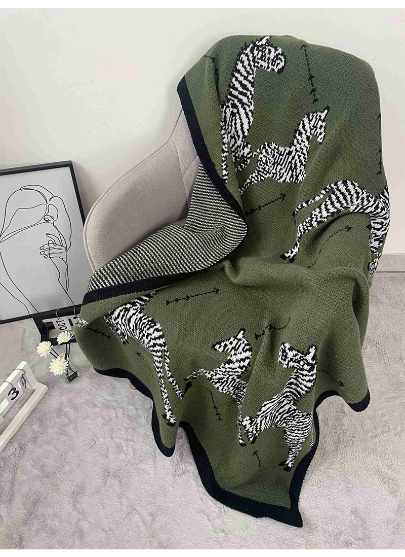 빈티지 그린 얼룩말 소파 담요 에어컨 담요 두꺼운 침실 사무실 낮잠 커버 담요 목도리 니트 작은 담요스토어 가기