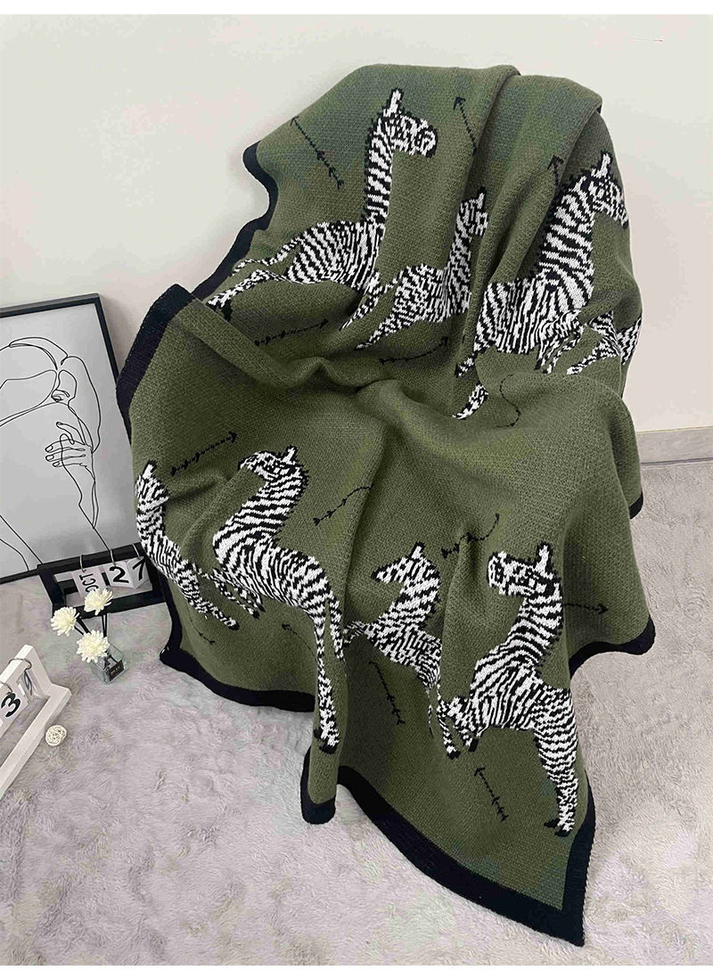 빈티지 그린 얼룩말 소파 담요 에어컨 담요 두꺼운 침실 사무실 낮잠 커버 담요 목도리 니트 작은 담요