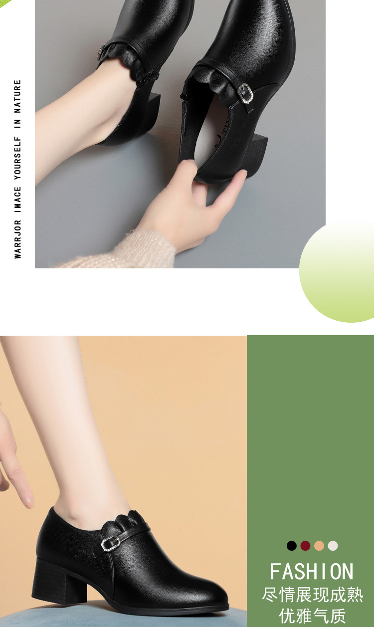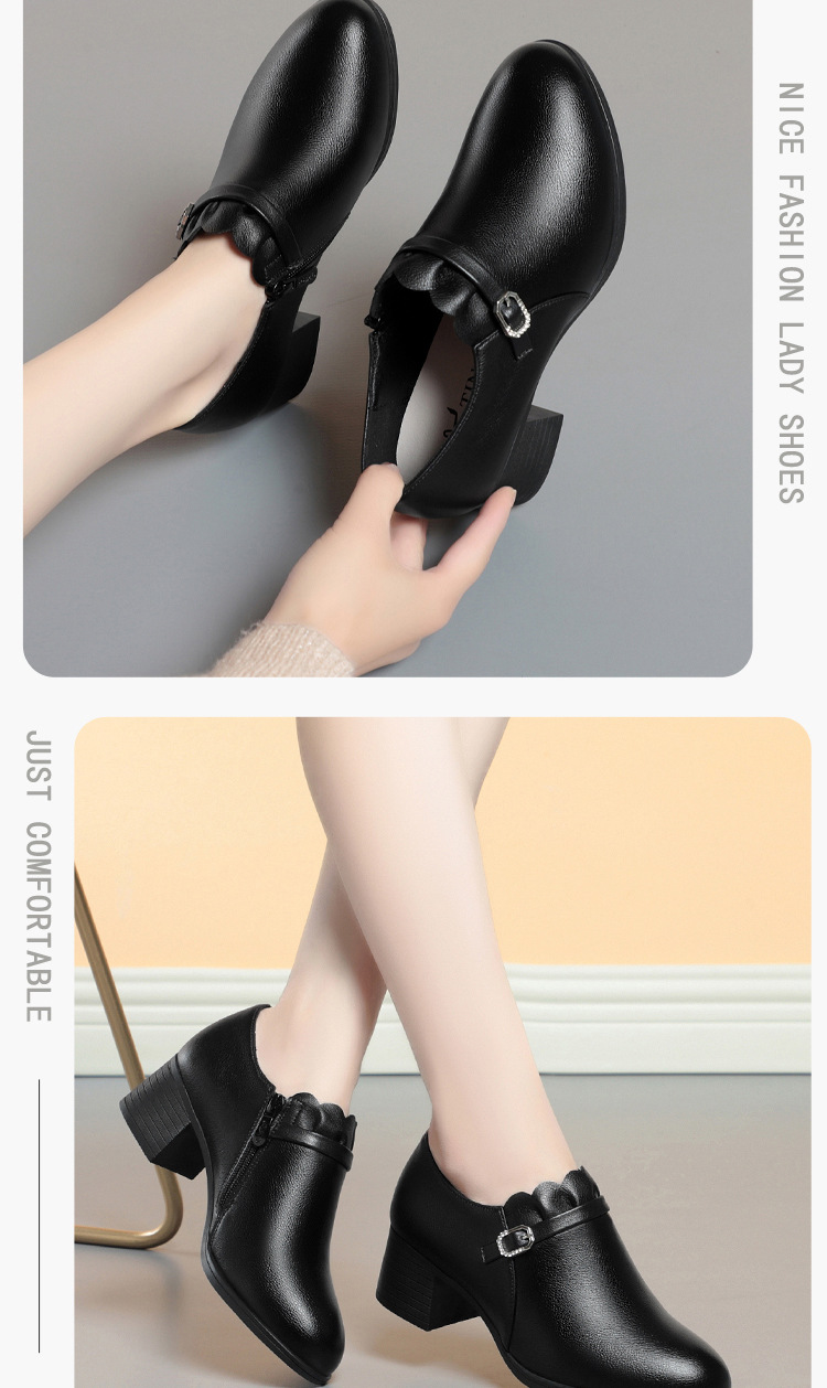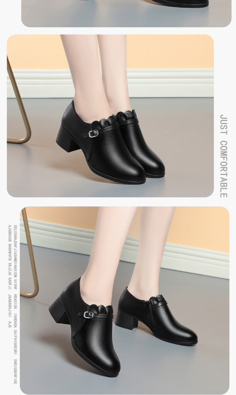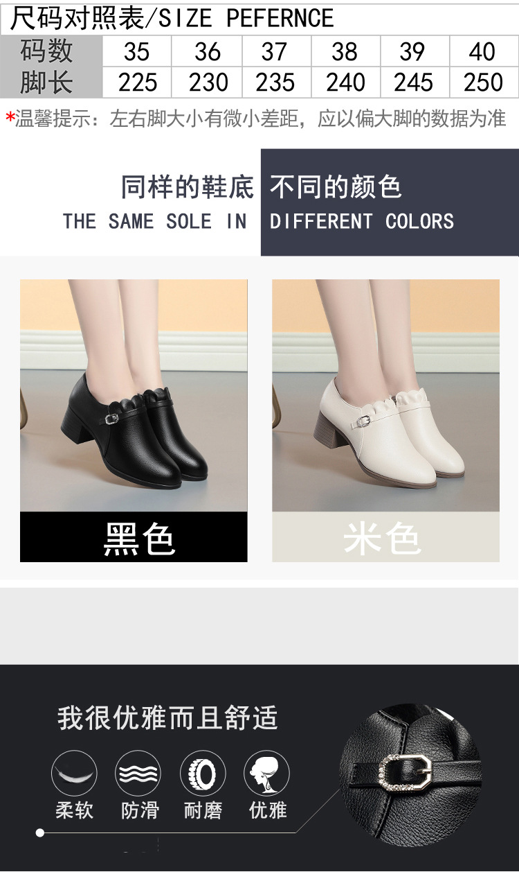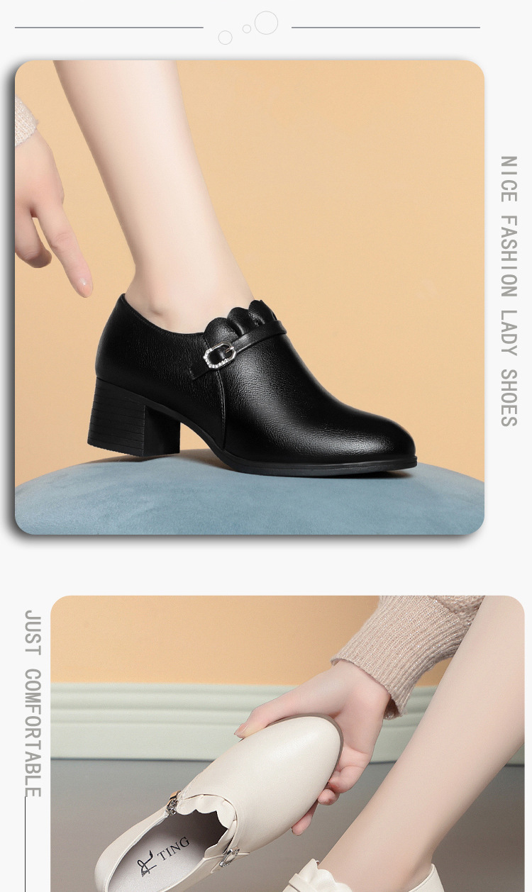 2026 봄/가을 신상품 단색 워터다이아몬드 여성용 두꺼운 굽 가죽신발 부드러운 밑창 캐주얼 편안한 중년 여성화스토어 가기