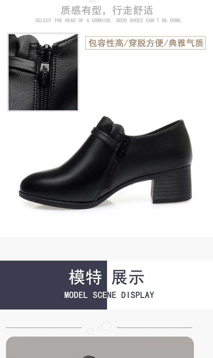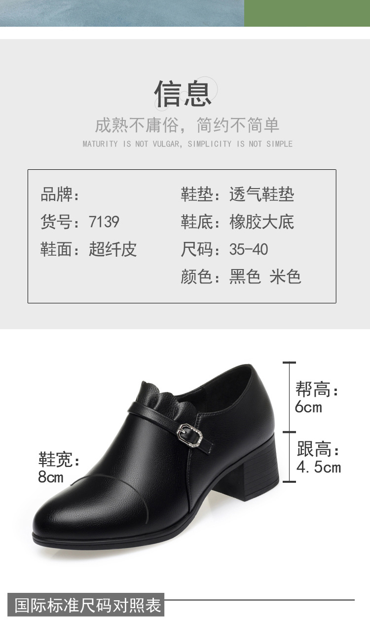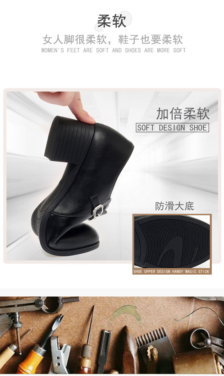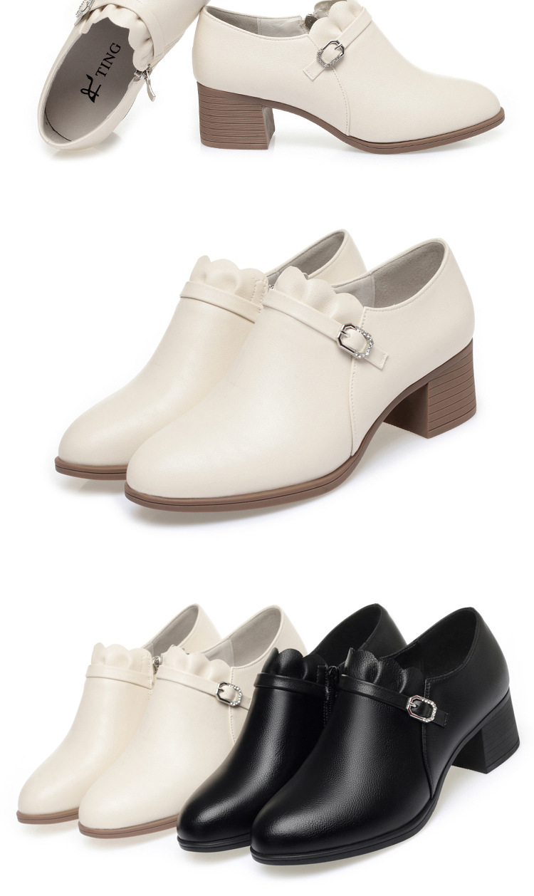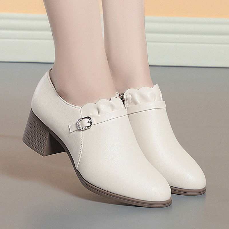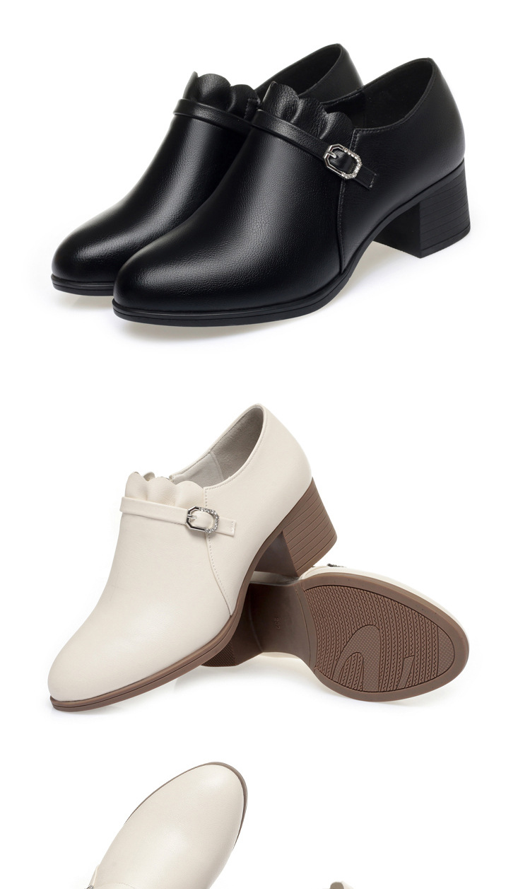 2026 봄/가을 신상품 단색 워터다이아몬드 여성용 두꺼운 굽 가죽신발 부드러운 밑창 캐주얼 편안한 중년 여성화스토어 가기