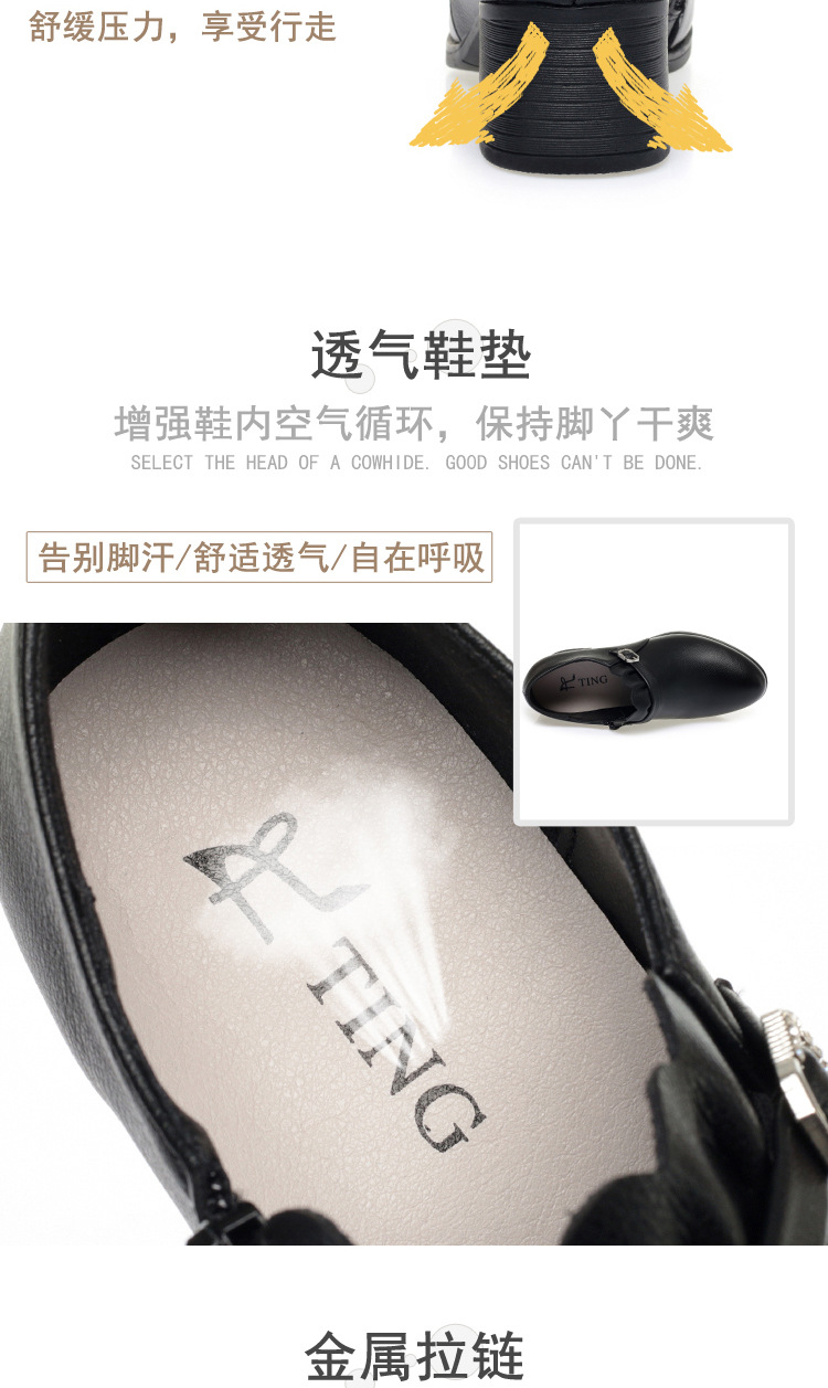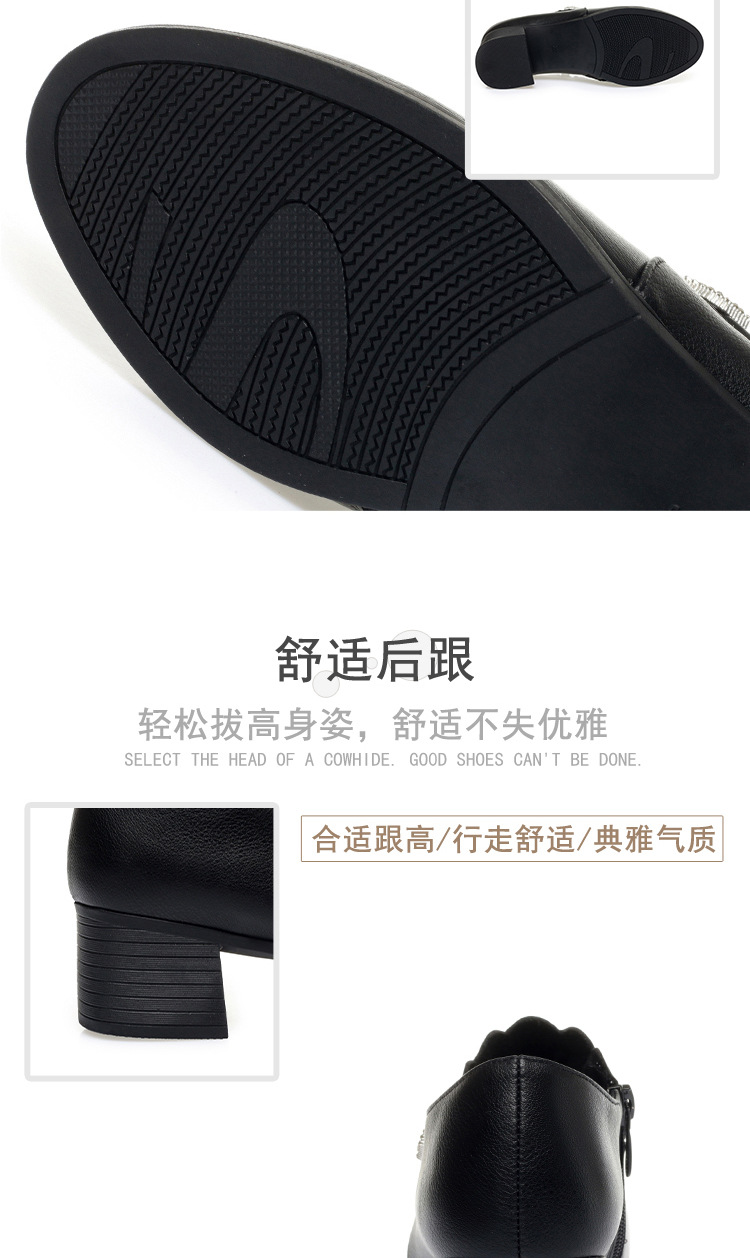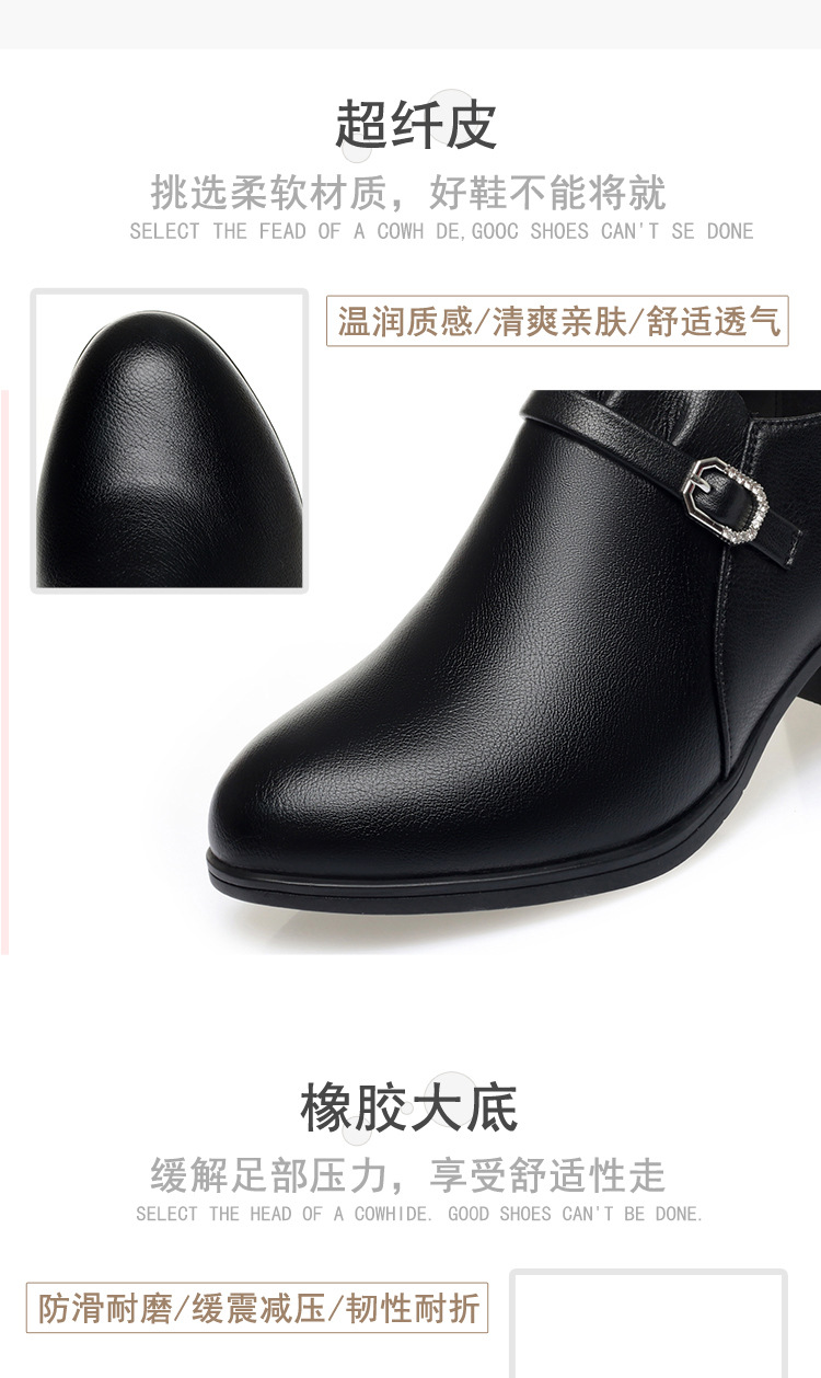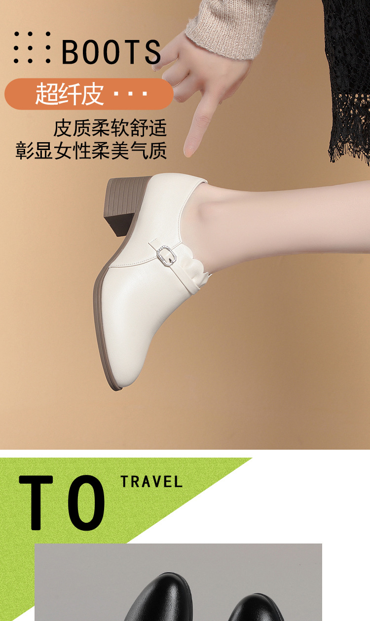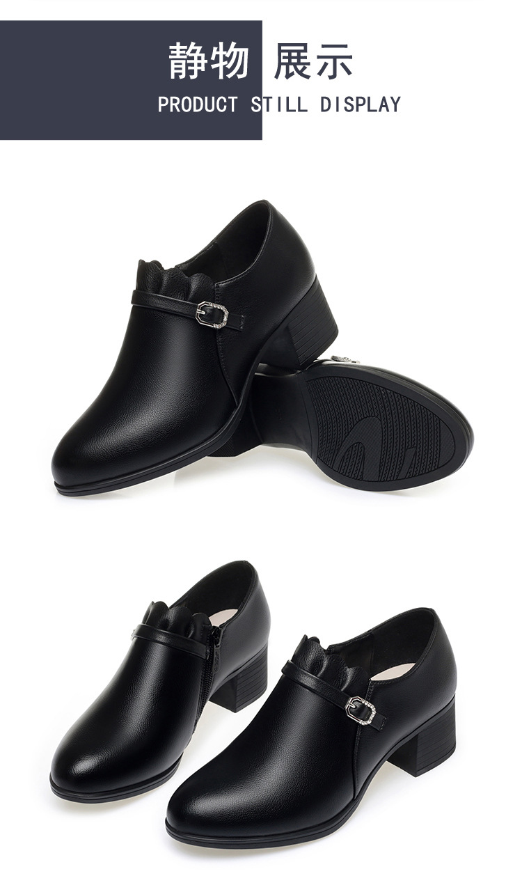 2026 봄/가을 신상품 단색 워터다이아몬드 여성용 두꺼운 굽 가죽신발 부드러운 밑창 캐주얼 편안한 중년 여성화스토어 가기