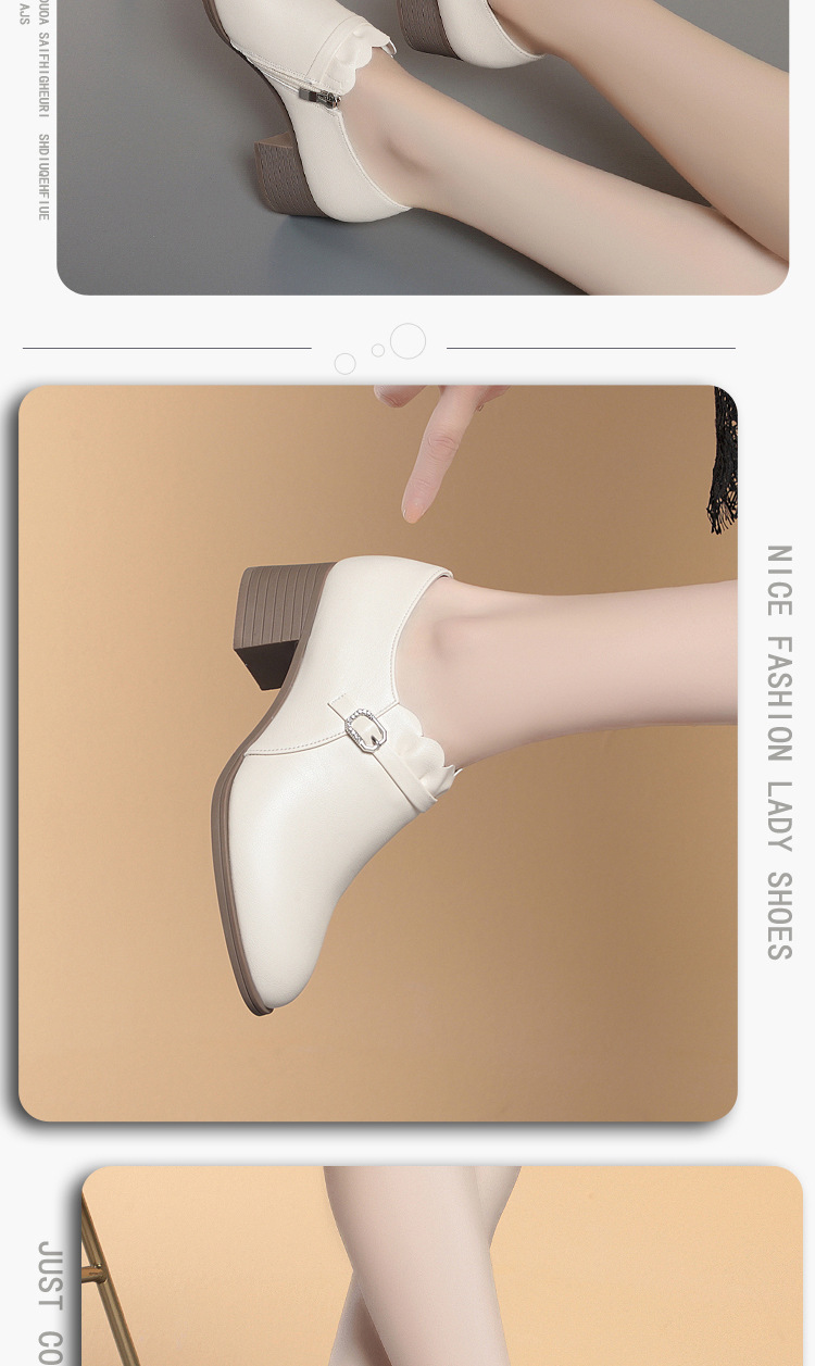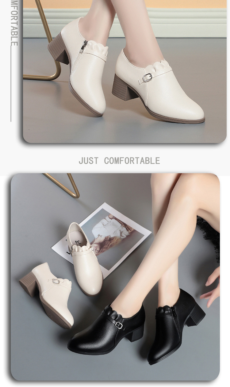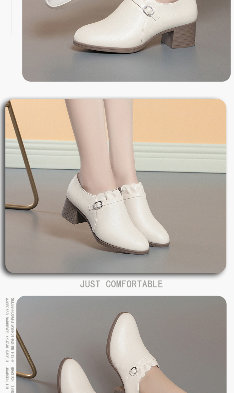 2026 봄/가을 신상품 단색 워터다이아몬드 여성용 두꺼운 굽 가죽신발 부드러운 밑창 캐주얼 편안한 중년 여성화