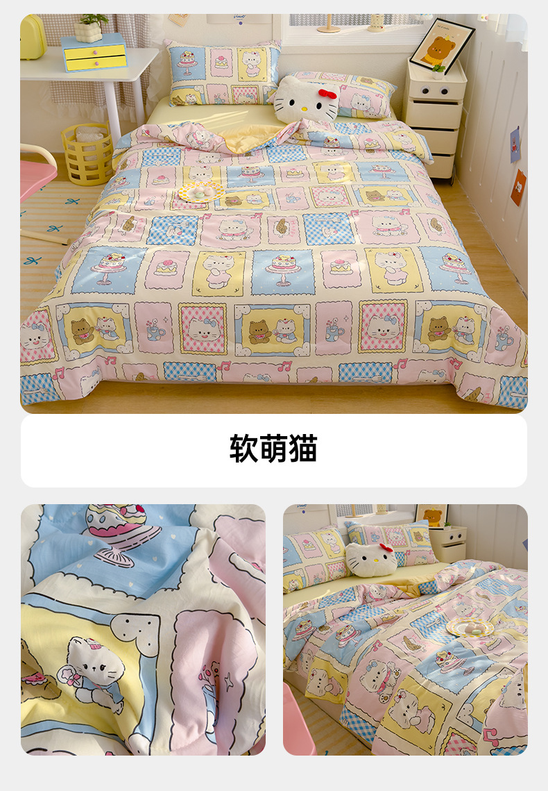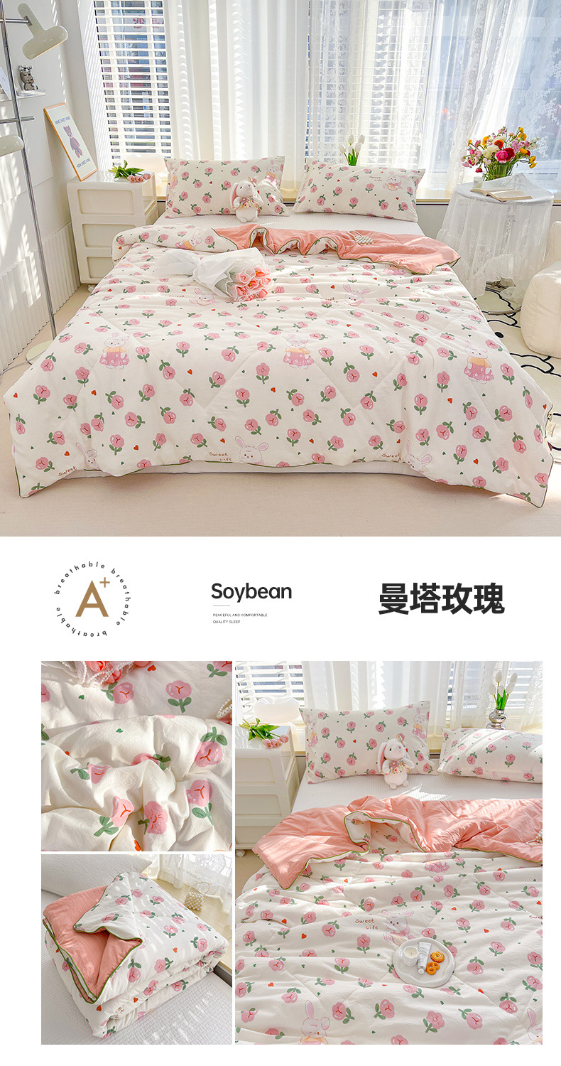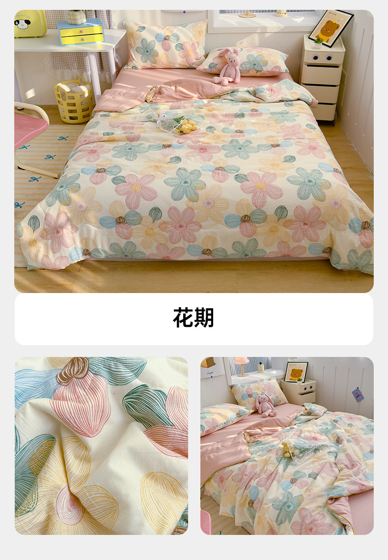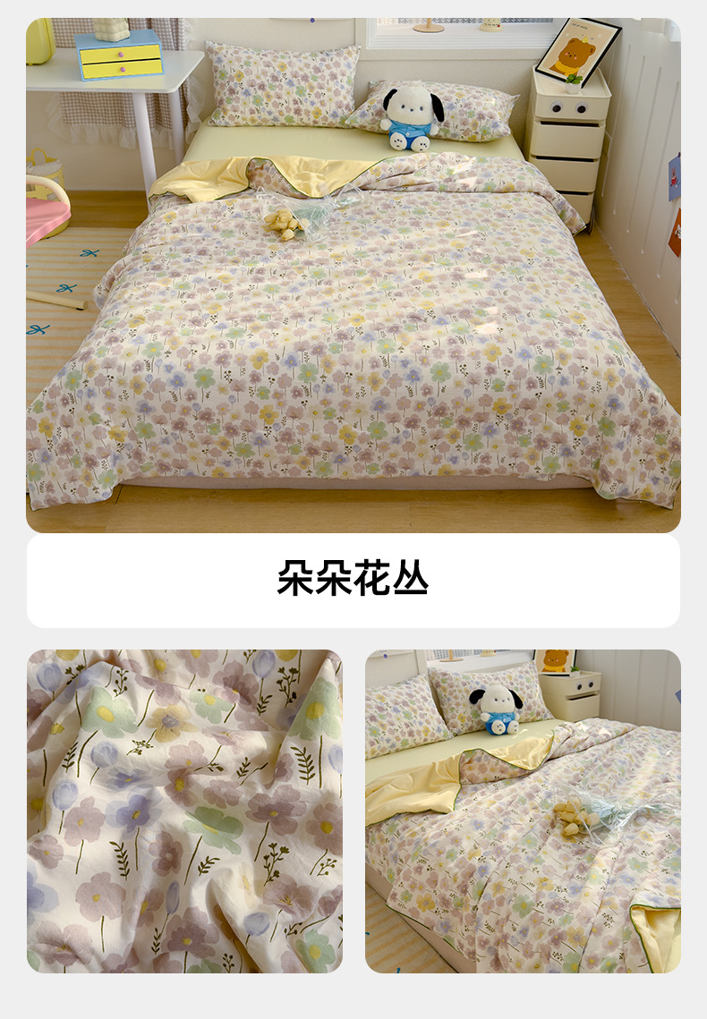 A급 이중 거즈 여름 이불, 에어컨 이불, 학생 기숙사 여름 얇은 이불, 여름 이불 4종 세트, 선물용 이불 도매