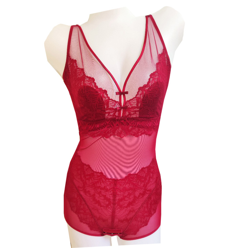 레이스 라이트 압력 섹시한 여성 삼각형 점프 수트 유방 패드 엉덩이 이슬 방지 포인트 어깨 끈 조절 지원 원피스