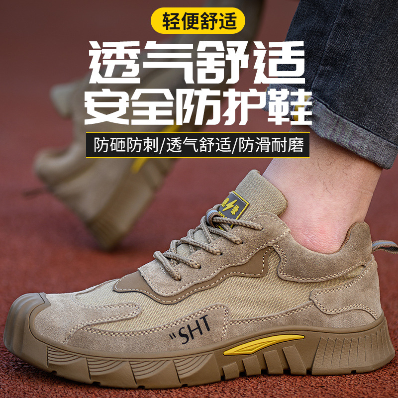 강철 발가락 캡이 있는 남성용 노동 보호 신발, 충격 방지 및 펑크 방지, 편안하고 가볍고 부드럽고 내마모성 및 통기성이 뛰어난 건설 현장 작업화, 미끄럼 방지스토어 가기