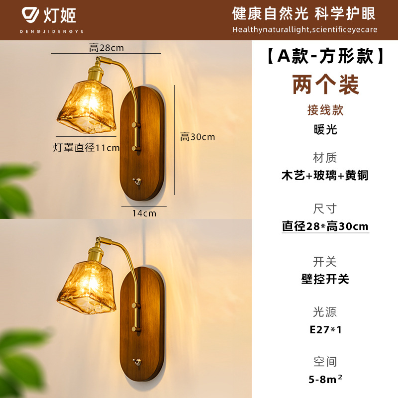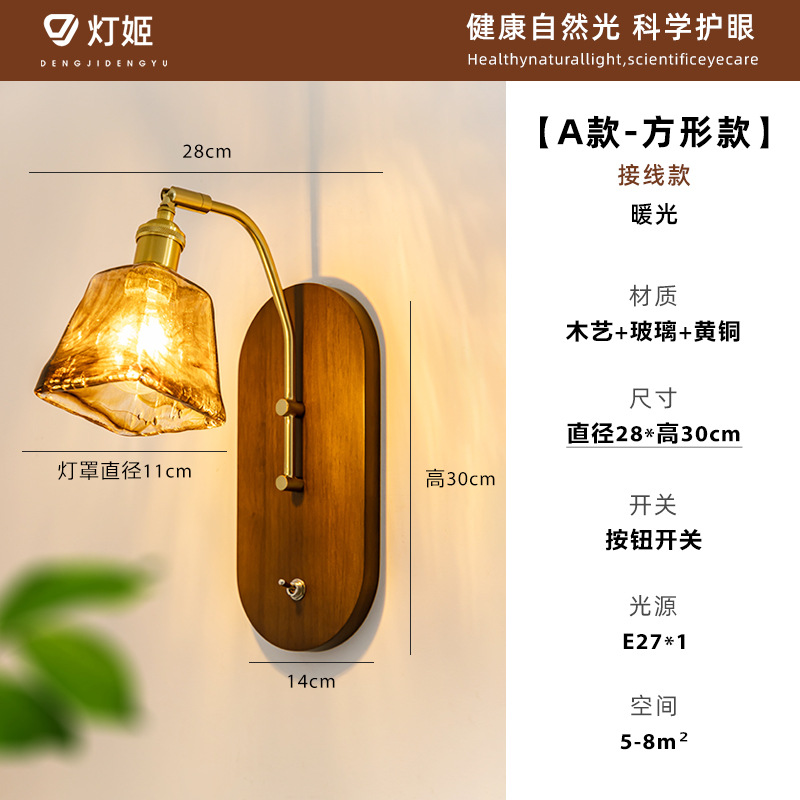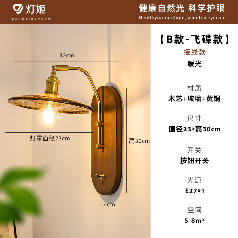 중고 벽등 침대 옆 고급스러운 레트로 와비사비 스타일 조명 원목 침실 복도 거실 배경 벽등