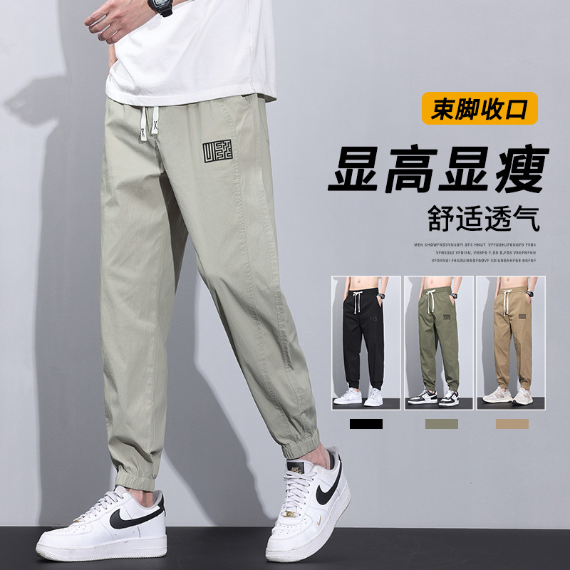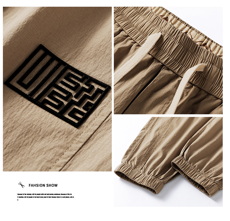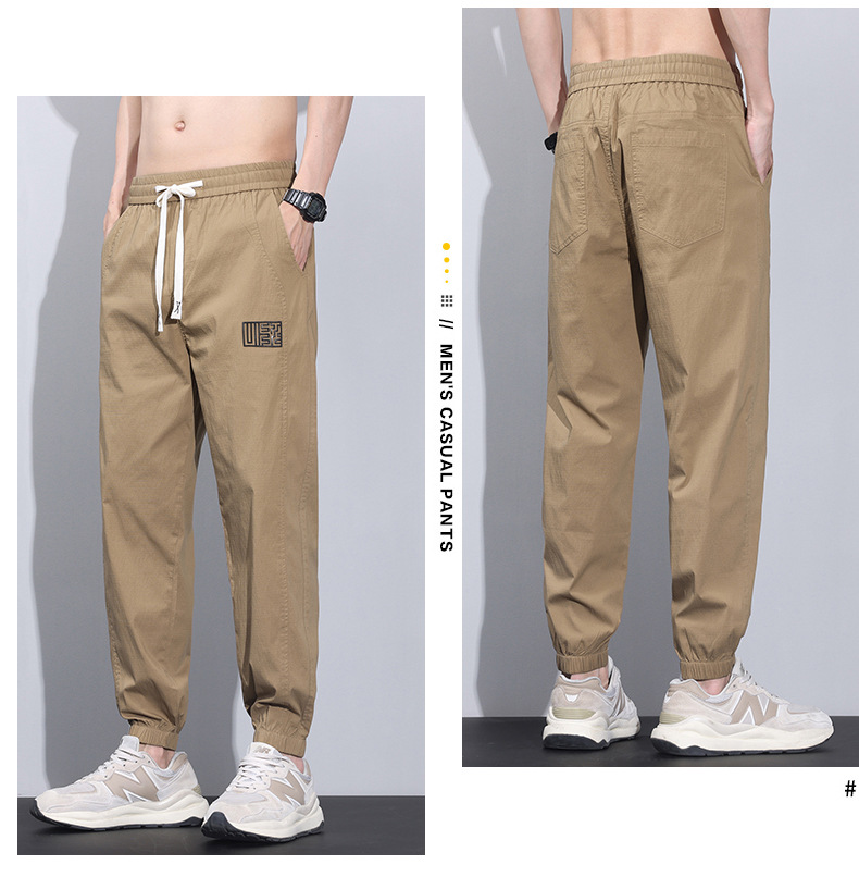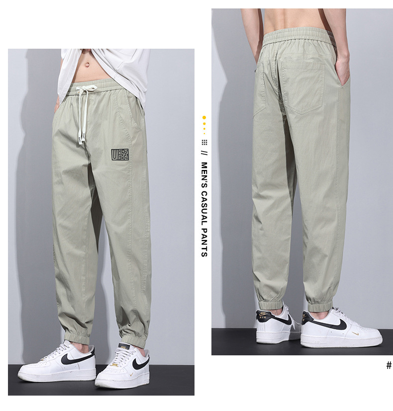 여름 얇은 코튼 브로케이드 통기성 빠른 건조 탄성 허리 느슨한 올 매치 바지 토 스포츠 캐주얼 바지 남성스토어 가기