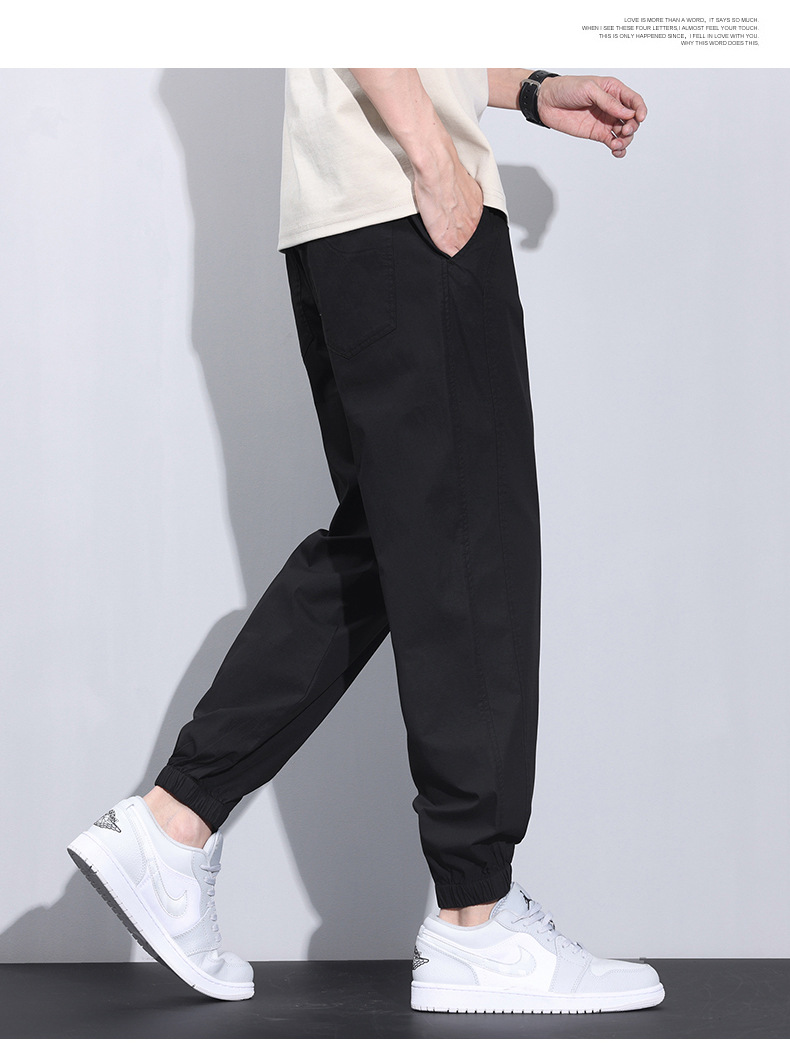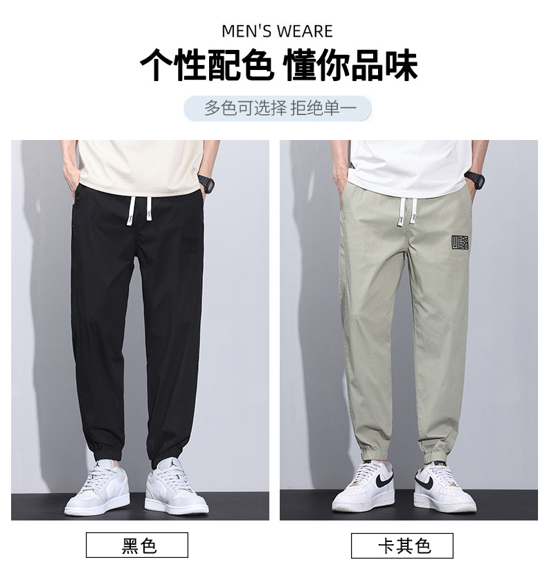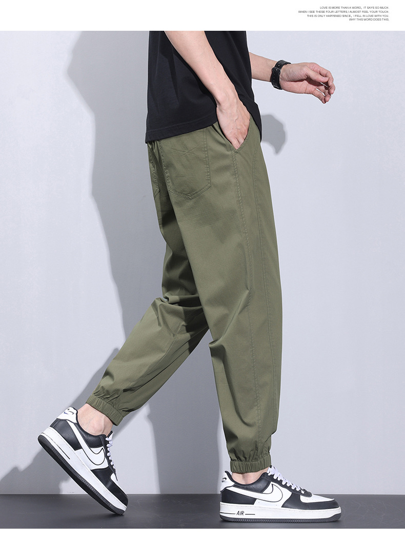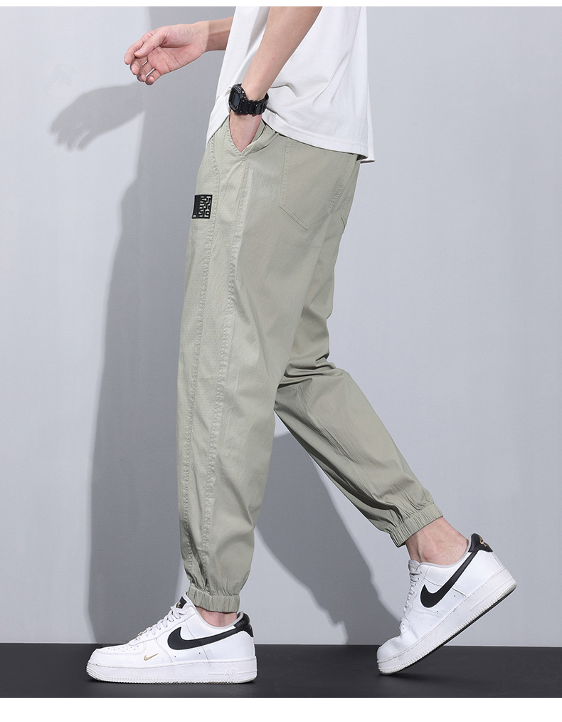 여름 얇은 코튼 브로케이드 통기성 빠른 건조 탄성 허리 느슨한 올 매치 바지 토 스포츠 캐주얼 바지 남성