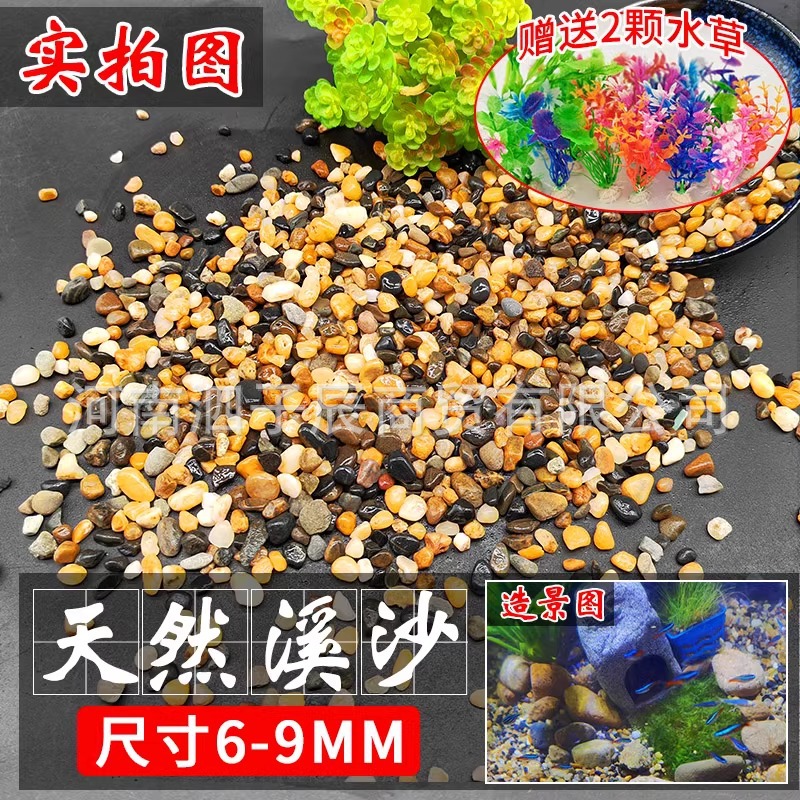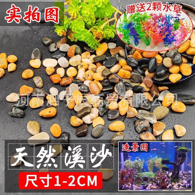 • 5kg 천연 스트림 돌 5-8mm 시뮬레이션 수생 식물 2 개를 보내
