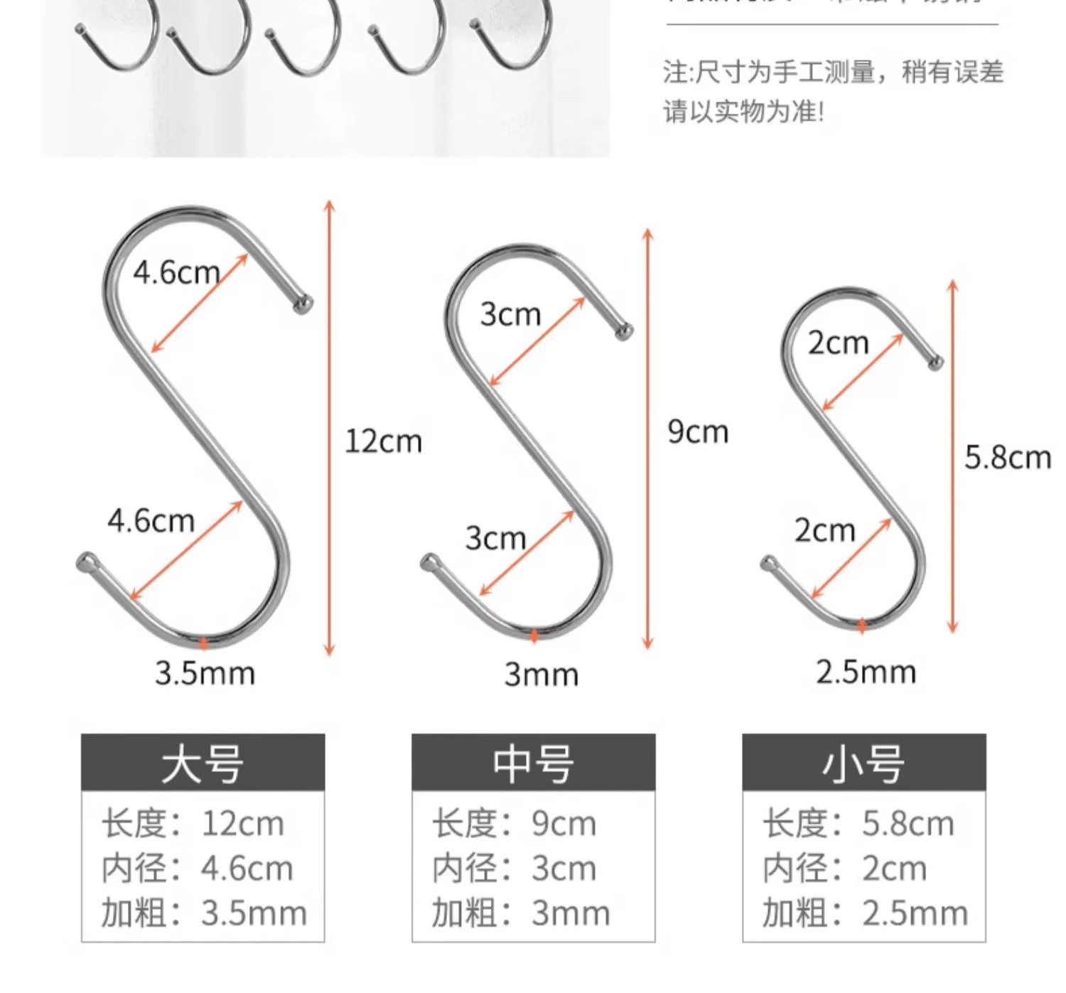 주방 옷장 후크를위한 소세지 및 베이컨 후크를위한 단단한 스테인레스 스틸 S 자형 후크 두꺼운 다기능 후크스토어 가기