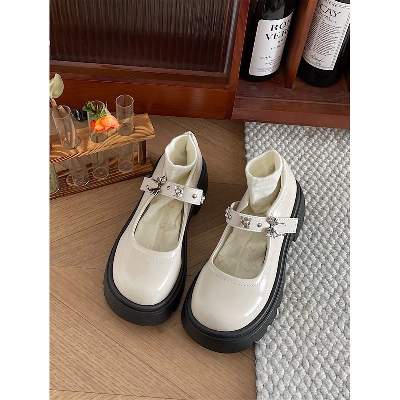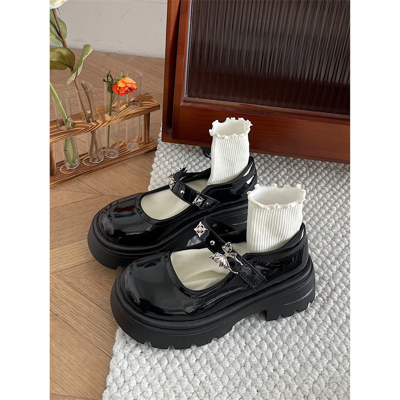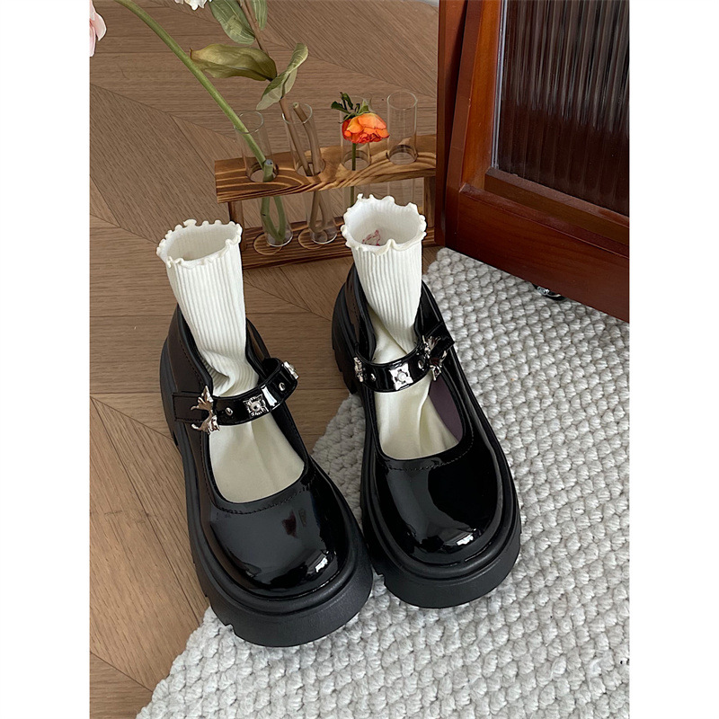 블랙 프렌치 레트로 두꺼운 바닥 메리 제인 작은 가죽 신발 여성의 2024 새로운 봄과 가을 원피스 얕은 입 청키 굽 신발스토어 가기