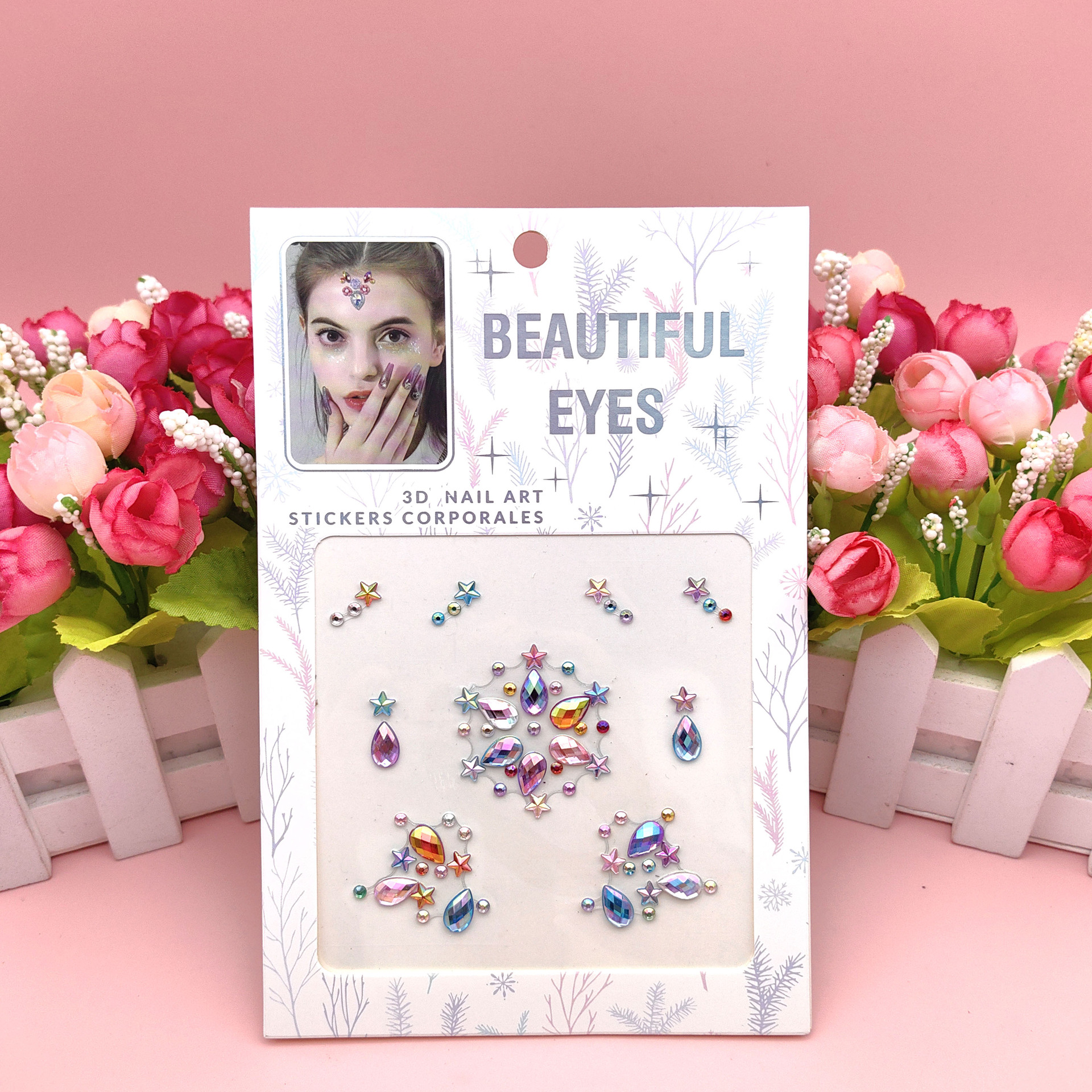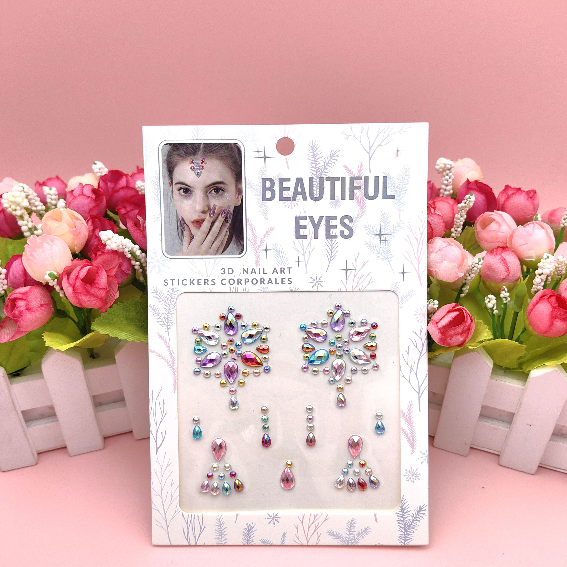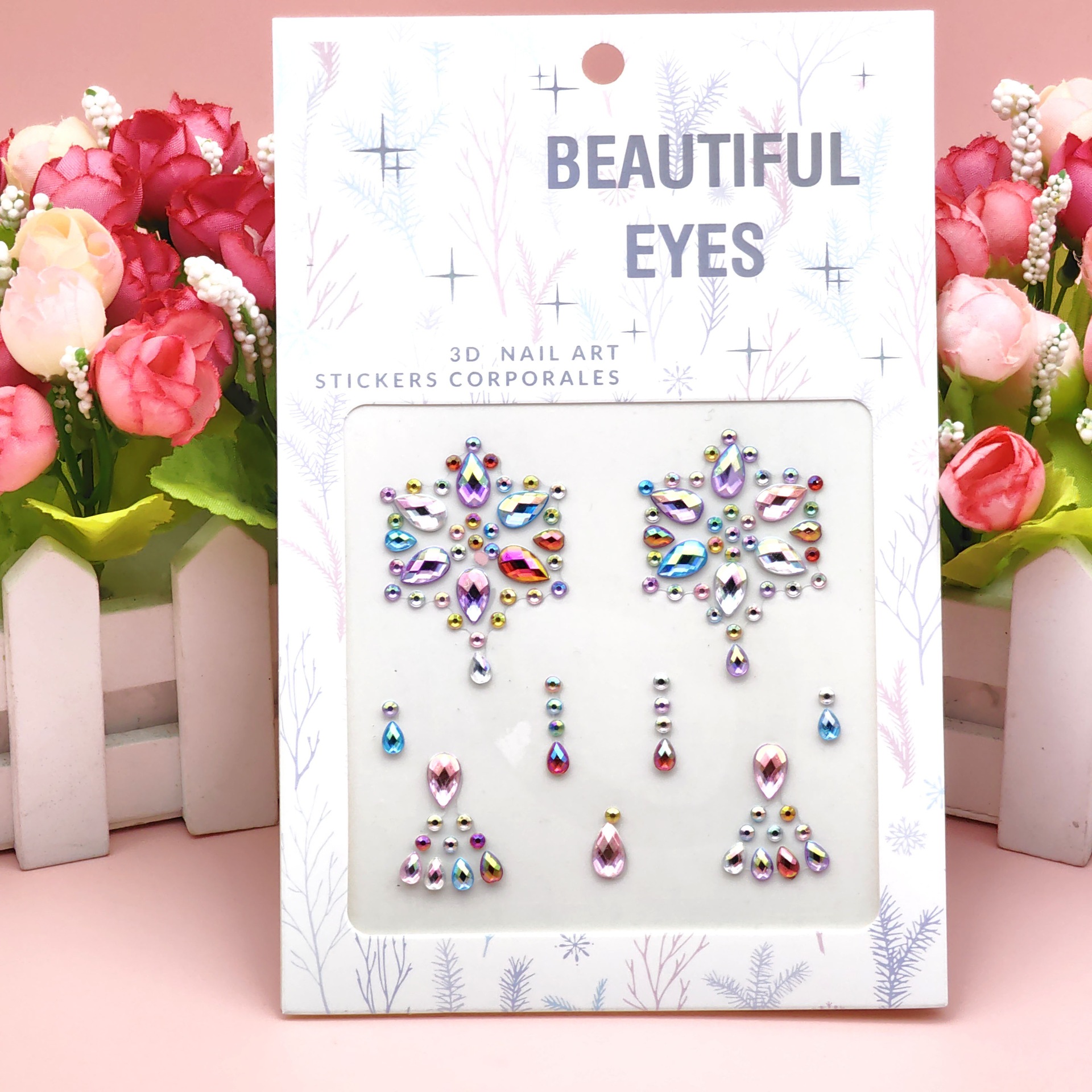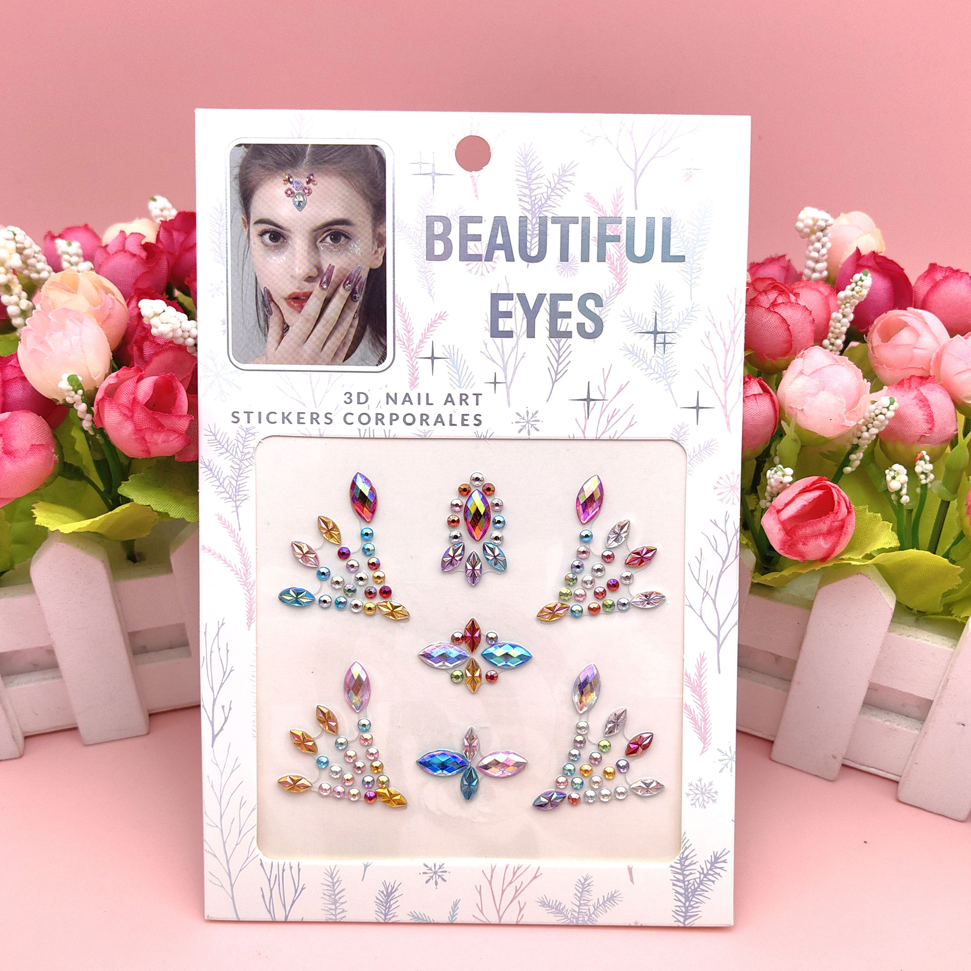 국경 다채로운 다이아몬드 페이스트 아이 메이크업 쥬얼리 얼굴 메이크업 어린이 무대 페이스트 페이스 다이아몬드 페이스트 아이 코너 라인스톤 눈썹 페이스트스토어 가기