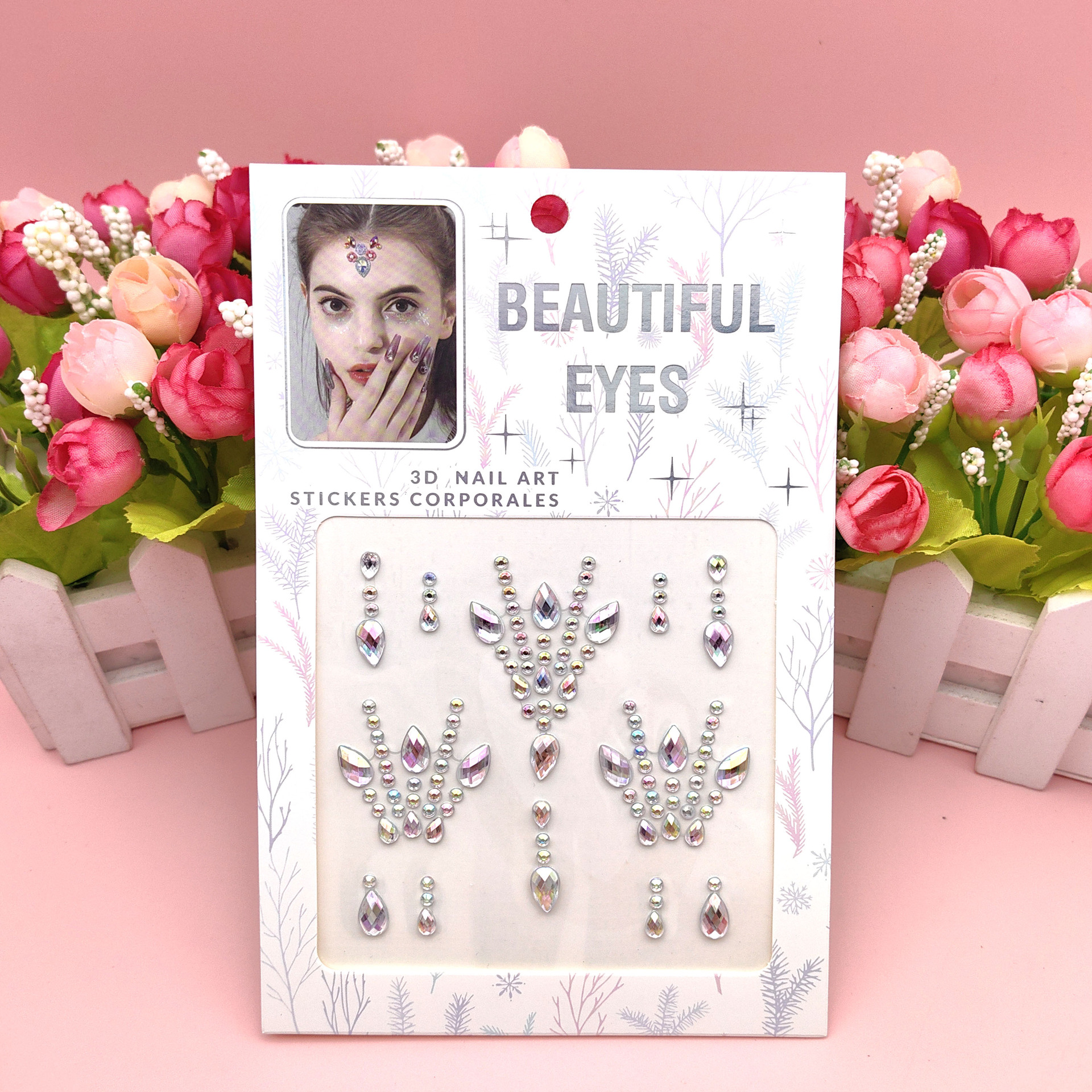 국경 다채로운 다이아몬드 페이스트 아이 메이크업 쥬얼리 얼굴 메이크업 어린이 무대 페이스트 페이스 다이아몬드 페이스트 아이 코너 라인스톤 눈썹 페이스트