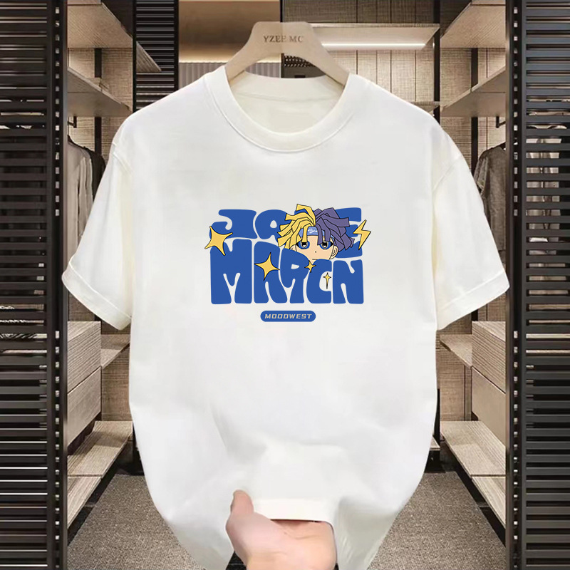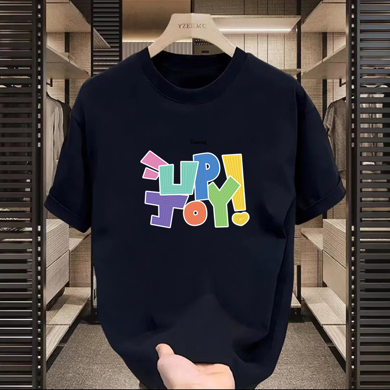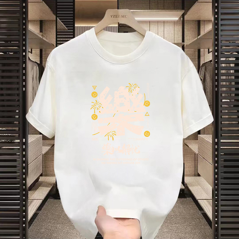 간단한 인쇄 그림 여름 트렌드 남성 반소매 조커 느슨한 크루 넥 티셔츠의 공장 도매 한국어 버전스토어 가기